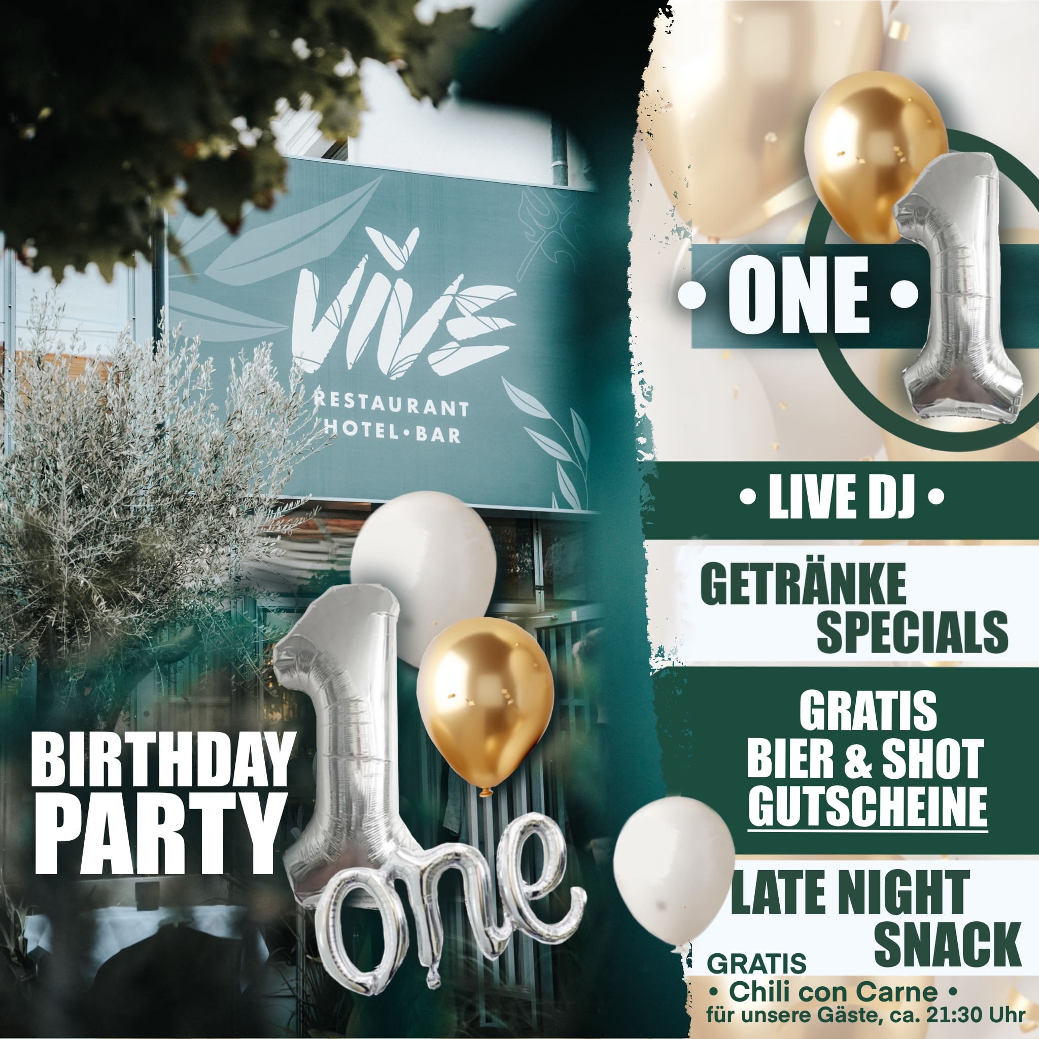 Feiert mit uns ein Jahr VIVE – ein Abend voller Geschmack, Musik & Atmosphäre.