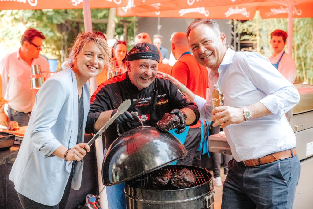 Bereits zum dritten Mal in Folge wurde die Grillgaudi von Napoleon unterstützt. Napoleon ist bekannt für seine Premium BBQ-Gas- und Infrarotgrills. Grillweltmeister Adi Matzek begeisterte die Gäste mit seinen kreativen Grillideen. Er zeigte eindrucksvoll, dass Grillen überall möglich ist – sei es im Garten, auf dem Balkon oder im Park. Gemeinsam mit Marina Freundl, der Geschäftsführerin von Napoleon, unterstrich er, wie wichtig die richtigen Zutaten sind, damit das Grillen bei jedem Wetter gelingt. Darüber hinaus hob Claus Hofmann-Credner, Marketingleiter bei Almdudler & Spezi, den hohen Stellenwert dieser Partnerschaft hervor. Dieses gemeinsame Ziel zeigte sich an diesem Abend in jeder Facette – von der Location über die Show bis zu den kulinarischen Highlights.
