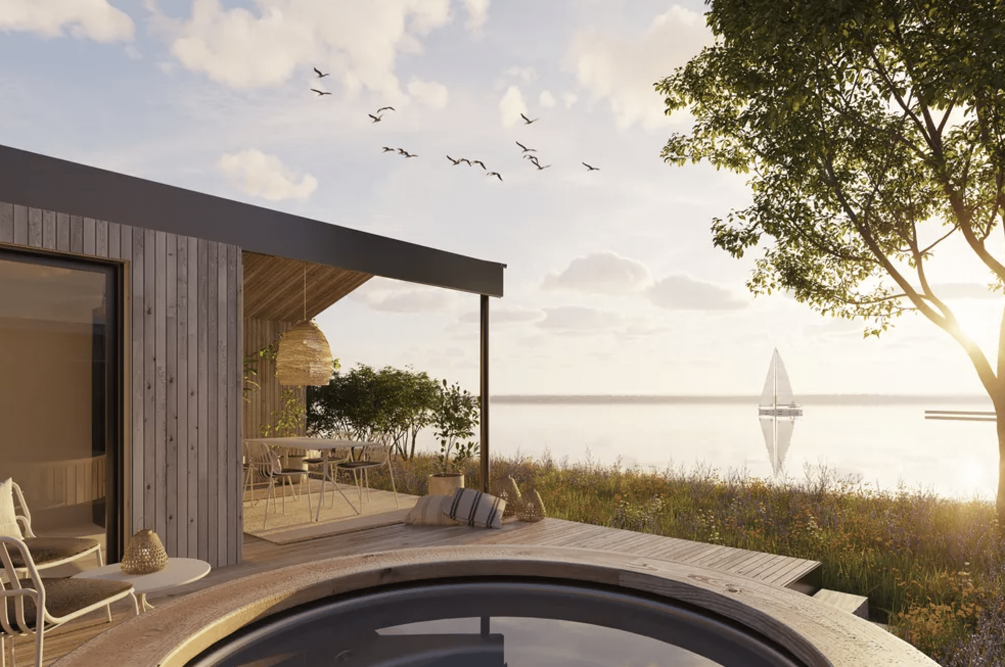 Neben dem bestehenden Campingplatz soll künftig (ab 2025) auch in einem Hotel übernachtet werden können. Die Gesamtinvestitionen belaufen sich auf rund 53 Millionen Euro.