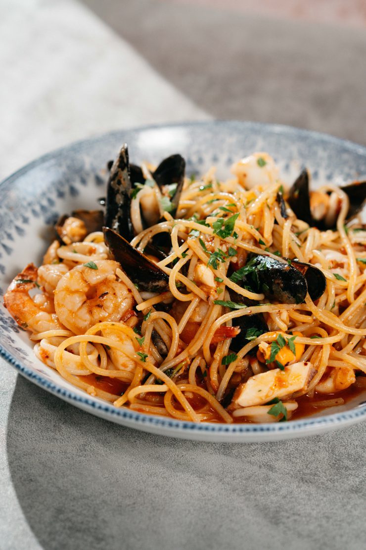 Dann Pasta – klassisch. Eine Frutti di Mare, wie sie sein soll: mit Tomate, Knoblauch und frische Meeresfrüchte. Das ist keine Rückbesinnung – das ist Konsequenz.