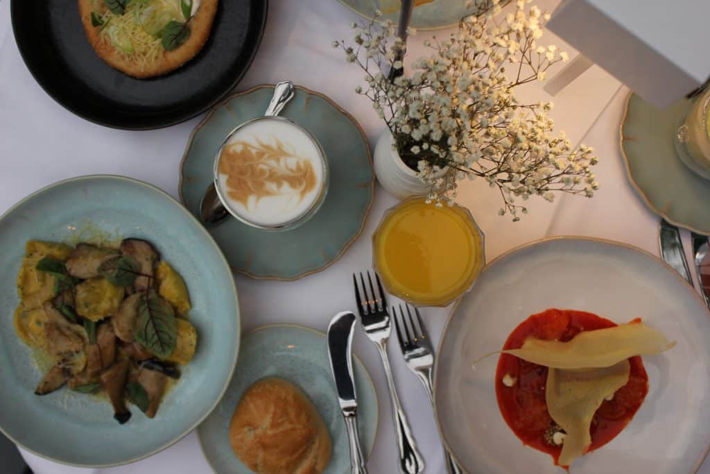 Die Brunch-Karte ist abwechslungsreich und mit saisonalen Highlights gespickt. Zum Auftakt am 20. April kommen auf den Tisch unter anderem Egg Florentine mit Rüben-Hollandaise und Basilikum, ein Sonnenblumenkern Risotto mit Kumquat oder eine Lachsforelle mit Wirsing, Kohlrabi und Beurre Rouge. Den süßen Abschluss bildet eine Dessert-Variation inklusive American Pancakes mit Ahornsirup.