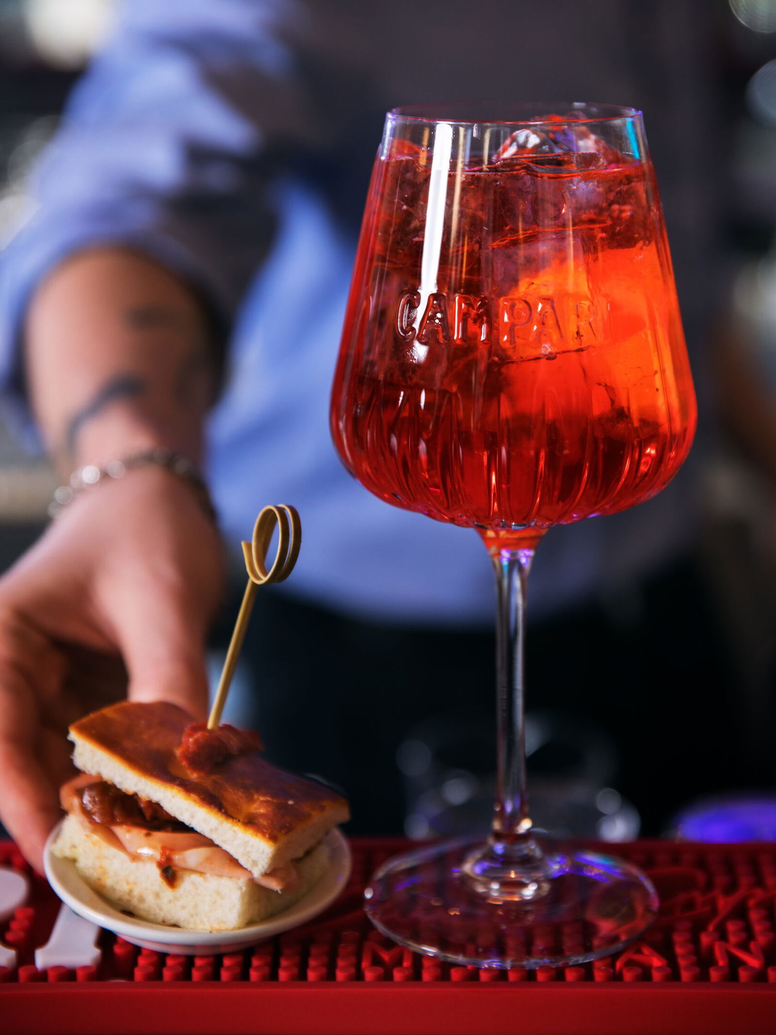 Begleitet werden die Drinks von kleinen mediterranen Gerichten, die unkompliziert gedacht und präzise umgesetzt sind. Cicchetti, Cornetti, Panini und wechselnde Specials wie Pasta del giorno greifen klassische Elemente der italienischen Küche auf und interpretieren sie modern.