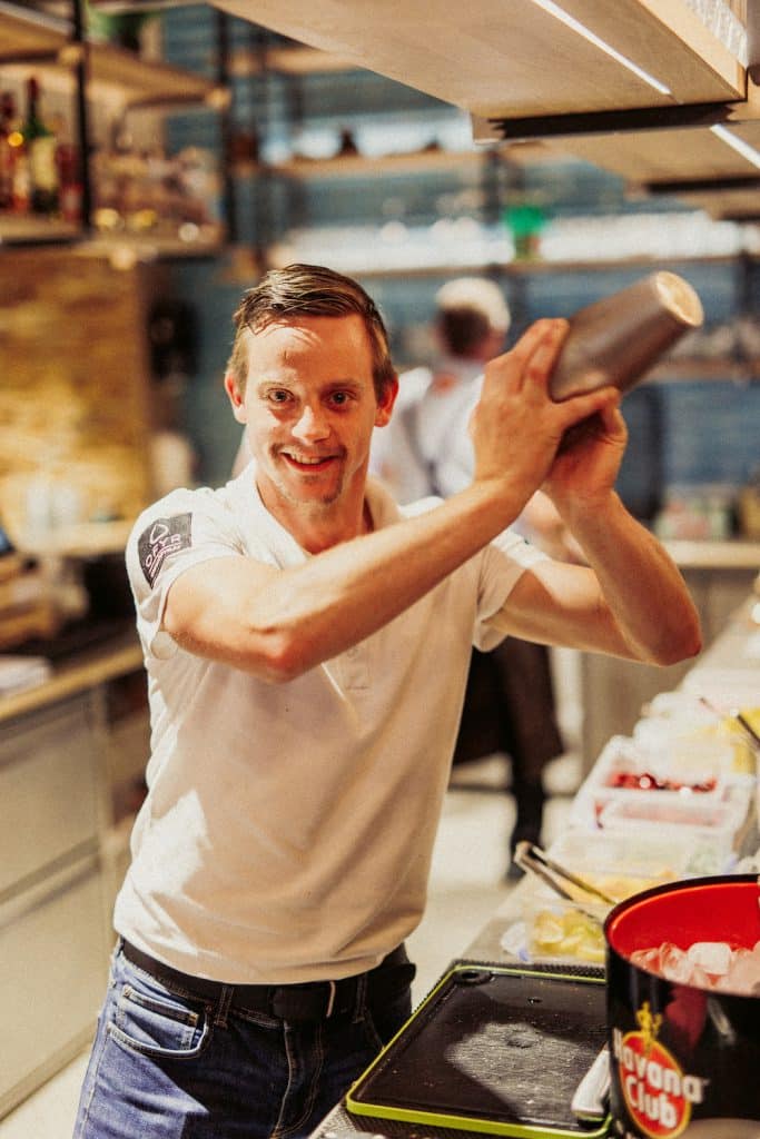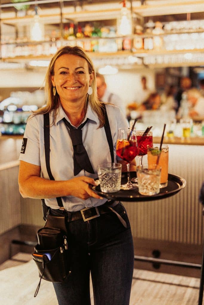 Jimmy Barta: Wir haben 100 Sitzplätze Innen und zwei Outdoor Terrassen. Eine davon ist überdacht für gesetzte Gäste die entspannt und mit herrlichem Ausblick dinieren wollen. Die andere Terrasse bietet mit chilligen Loungemöbeln und eigener Snackkarte Badegästen oder Sportlern einen Platz. Auf der großen Seeterrasse, die sich direkt am Wasser befindet haben wir noch einen Schiffs-Container zur Bar umgestaltet. Die Optik orientiert sich auch hier an dem Hauptgebäude und fügt sich nahtlos in die Umgebung ein. Auf der Seeterrasse haben wir für unsere Gäste jede Menge Liegestühle und Sitzsäcke. Hier lässt sich ein Badetag perfekt verbringen.