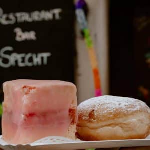 In der Bäckerstraße 12 im ersten Wiener Gemeindebezirk heißt es heute und morgen noch “Krapfen bitte”! Das Top-Lokal Specht bietet süße “Faschingsspechteln” to go aus dem Faschingsfenster an.