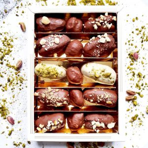 Die Datteln importiert die Datteria allesamt aus Madina in Saudi Arabien – dem unumstrittenen “Mekka” der Süßfrucht. Dort steht der Betrieb in engem Kontakt mit den zuständigen Dattelfarmern. Kombiniert werden diese anschließend in der Manufaktur mit der hochwertigen österreichischen Schokolade von Zotter, die ebenfalls für Regionalität und Nachhaltigkeit steht. “Das Beste aus zwei Welten also!”, fasst Shabaiek stolz zusammen. Der Standort Wien als “Schmelztiegel der Kulturen” steht dabei sinnbildlich für das Leitbild des Unternehmens.