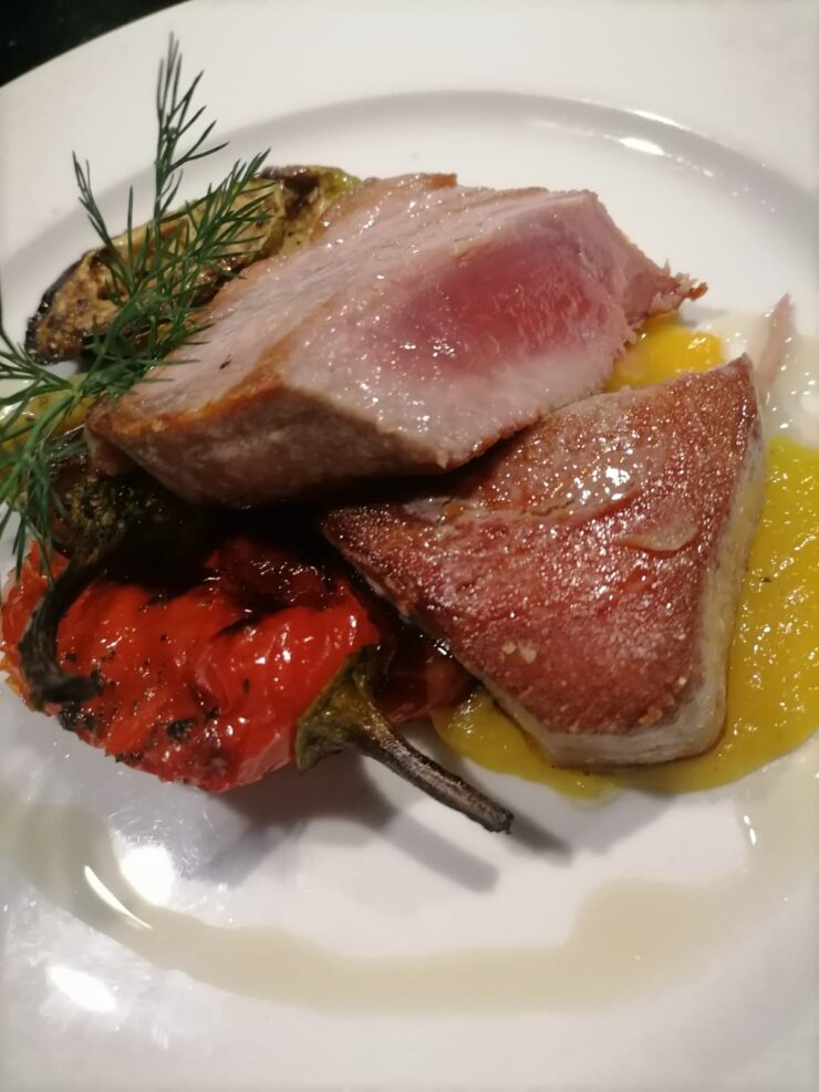 Alternativ ein dalmatinisches Drachenkopf-Brodetto mit cremiger Polenta, das die maritime Küche der Adriaküste authentisch widerspiegelt.