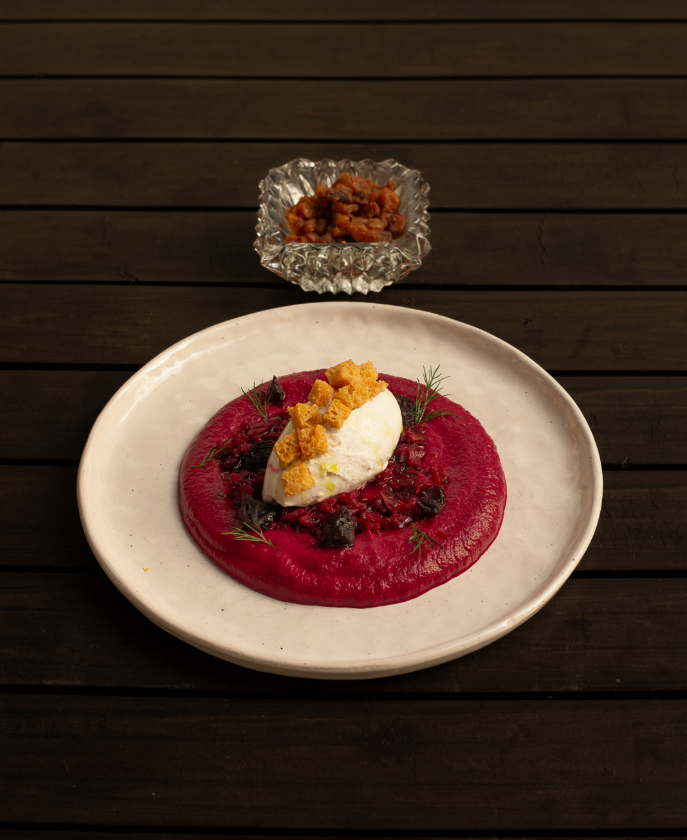 mit gebackenen Rüben und Miso-Lauch