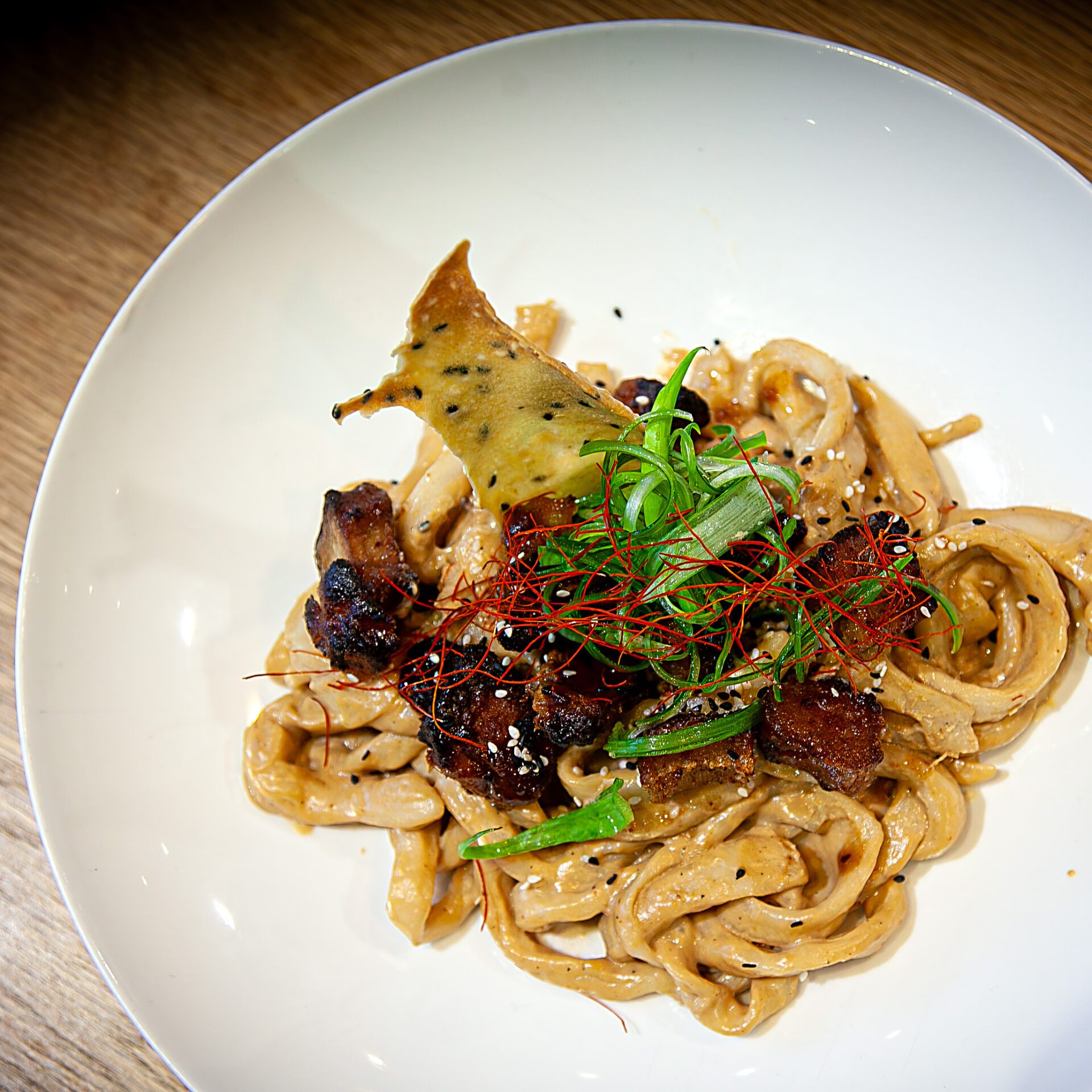 Erdnuss Sauce | Jungzwiebel | knuspriger Tofu | Sesam Cracker (vegan)