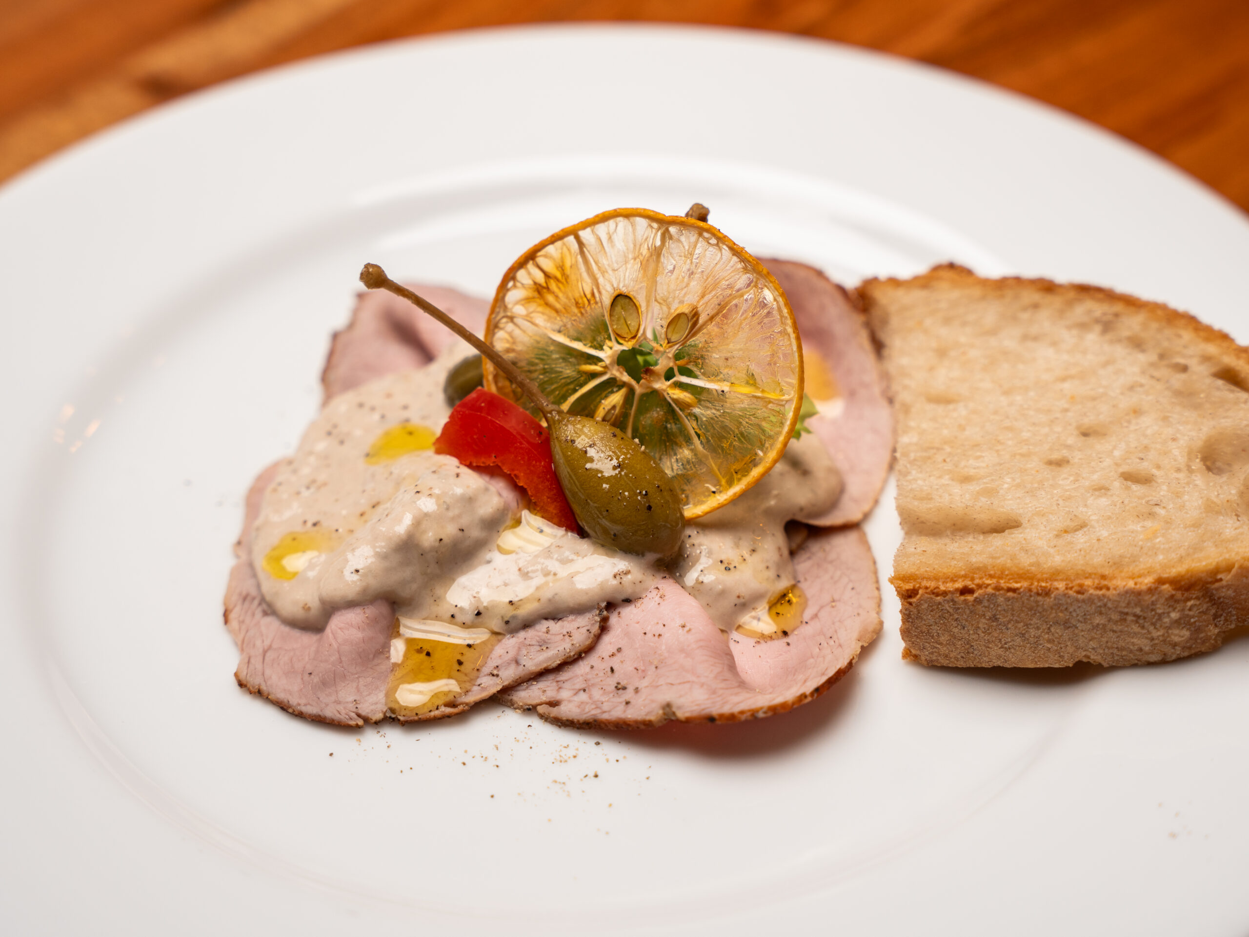 Fein geschnittenes Beef Tartare vom österreichischen Jungrind, behutsam abgeschmeckt und mit Buttertoast serviert, bringt zarte Texturen und würzige Nuancen harmonisch zusammen.