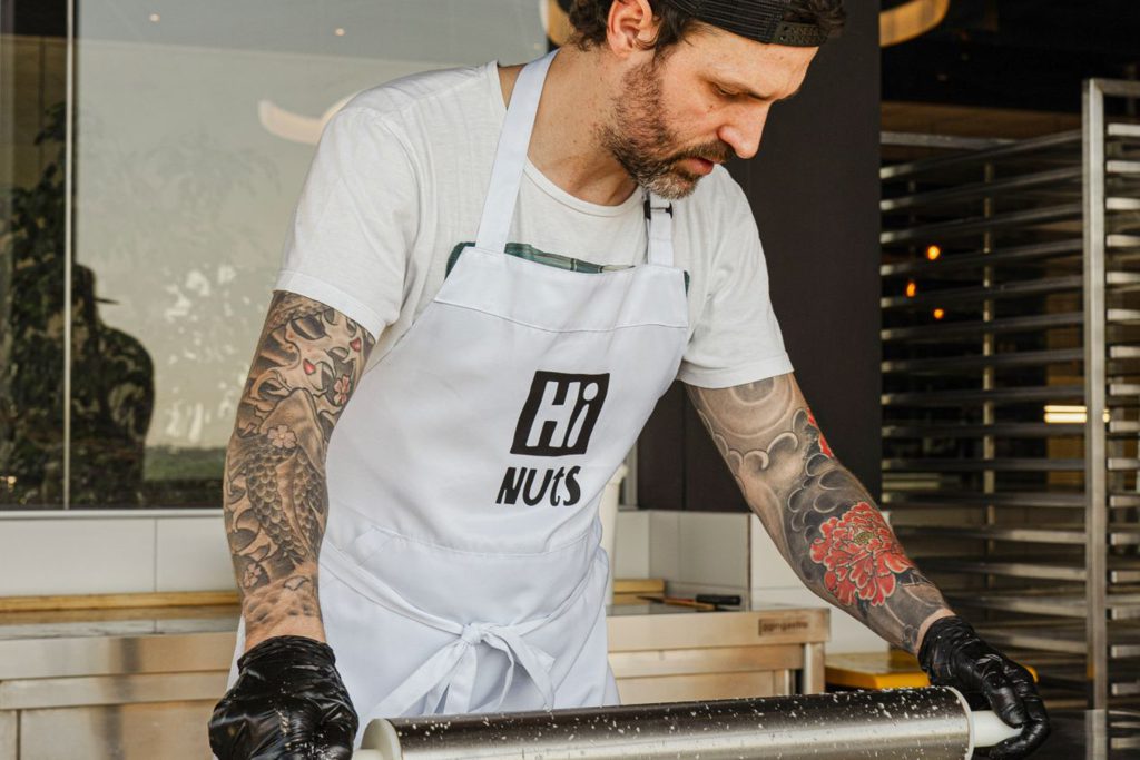 Zwei Jahre lang tüftelte Luegmayr an der idealen Rezeptur – heraus kamen die Frischnussriegel von HiNUtS, die in Handarbeit im Mühlviertel produziert werden. Der Name steht für „High Nutrients“ (hohe Nährstoffdichte) und das Konzept ist ebenso simpel wie überzeugend: Erdnüsse, Honig, Chiaöl, Reisprotein, Ballaststoffe und eine Prise Meersalz. Mehr braucht es nicht für langanhaltende Energie und ein gutes Körpergefühl.