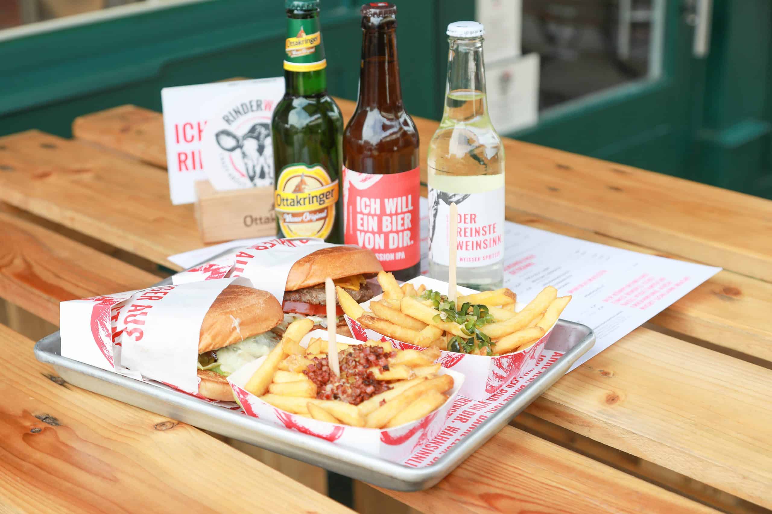 Sitzen oder stehen kann man am Burger Kiosk nur draußen, dafür hat man aber perfekte Sicht auf das Geschehen. Langweilig wird der Burgergenuss garantiert nicht, und das nicht nur wegen dem rundherum. Auch die ausgefallenen Rinderwahn Burger Kreationen sorgen optisch sowie auch geschmacklich für ein Erlebnis.