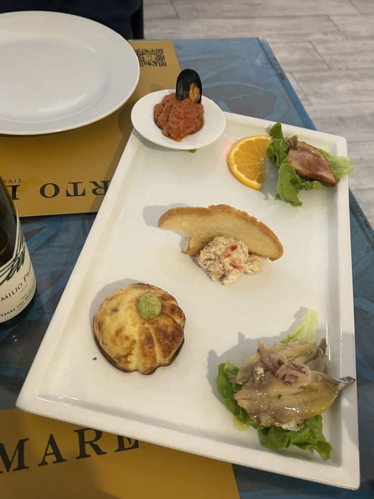 Auf Empfehlung von Vincenzo und auf der Suche nach typisch livornesischen Gerichten kehren wir zum Mittagessen im „Porto di Mare“ ein. Die Antipasti, ein fünferlei aus Meeresfrüchten, waren an Frische und Geschmack nicht zu überbieten. Und auch die Lust nach traditionellen Gerichten aus der Region wurde dank „Baccalà alla Livornese“ gestillt – gesalzenes, luftgetrocknetes und anschließend frittiertes Fischfilet. Ein Mittagessen in Livorno ist aber nicht komplett, wenn es nicht mit „Ponce“ gestillt wird – dem typischen Getränk aus Kaffee, Rum und Zitronenschale. Ein absolutes Muss für jeden, der wie die Einheimischen genießen möchte.