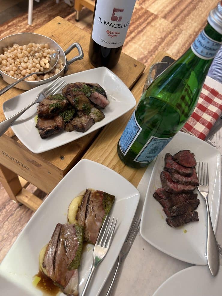 Wer ein kulinarisches Wochenende in der Toskana verbringen, und so viel wie möglich von ihrer Vielfalt genießen möchte, der kommt an zwei Dingen jedenfalls nicht vorbei, nämlich an Meeresfrüchten und „Bistecca“. Wohlbekannt ist natürlich die „Bistecca Fiorentina“, die man am besten in der Hauptstadt selbst genießt, etwa in den mehrfach ausgezeichneten Steakhäusern Trattoria Dal’Oste oder Regina Bistecca. Die Zubereitung von Rindfleisch haben die Toskaner aber allgemein perfektioniert – nicht nur jene in der Florentiner-Variante. Daher empfiehlt sich, speziell wenn man in der Gegend rund um Grosseto oder Livorno unterwegs ist, ein Abstecher zum „Il Macello di Bolgheri“. Inmitten von Weinreben und in einer Lage, die märchenhafte Sonnenuntergänge verspricht, findet sich das Restaurant im Ortsteil Bolgheri der Gemeinde Castagneto Carducci, unweit des charmanten Dörfchens Borgo Bolgheri. Es empfiehlt sich in jedem Fall, ein paar Minuten weiter zu fahren und die wunderschöne Straße „Viale dei Cipressi“ entlangzufahren! Im „Macello di Bolgheri“ werden Gäste von Küchenchef Omar Basacchi und dem „Macellaio“ also dem Fleischhauer und Hausherrn Dario Cecchini höchstpersönlich empfangen. Letzterer ist wohl einer der berühmtesten Fleischer der Welt, und war Teil der Netflix Serie „Chef’s Table“ (Episode 6). Auf der romantischen Terrasse oder zwischen Rinderhälften und rot-weiß karierten Servietten ist man hier im Paradies der Fleischtiger angekommen – und kann dieses auch mit gutem Gewissen genießen. Denn das Fleisch – in diesem Fall ausnahmslos Rind – ist zu 100% „fatta in casa“ von Cecchini und seinem Team. Die beste Wahl für den ersten Besuch ist das Degustationsmenü, bei dem sich nicht nur der Magen, sondern, zumindest aus österreichischer Sicht, auch das Geldbörserl freut. Um 50€ pro Person verkostet man über 10 Gerichte – Anitpasti, Vorspeisen, Hauptspeisen und ein Dessert – inklusive einer Flasche Rotwein aus eigener Produktion. Von Beef-Tartare und Carpaccio, über die wahrscheinlich beste Lasagne der Welt bis hin zu einer Variation aus verschiedensten Steaks und Beef-Kreationen probiert man sich hier praktisch durch die Speisekarte. Vorbeischauen lohnt sich!