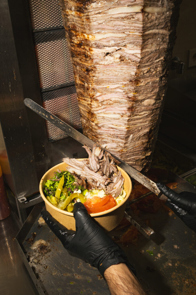 Nur wenige Schritte von Oper und Kärntner Straße entfernt setzt das Lokal auf Shawarma, Sandwiches, Wraps, Bowls und Mezze. Also auf ein Angebot, das weniger für einen langen Restaurantbesuch gedacht ist, sondern praktisch, alltagstauglich und schnell sein soll. Streetfood eben.