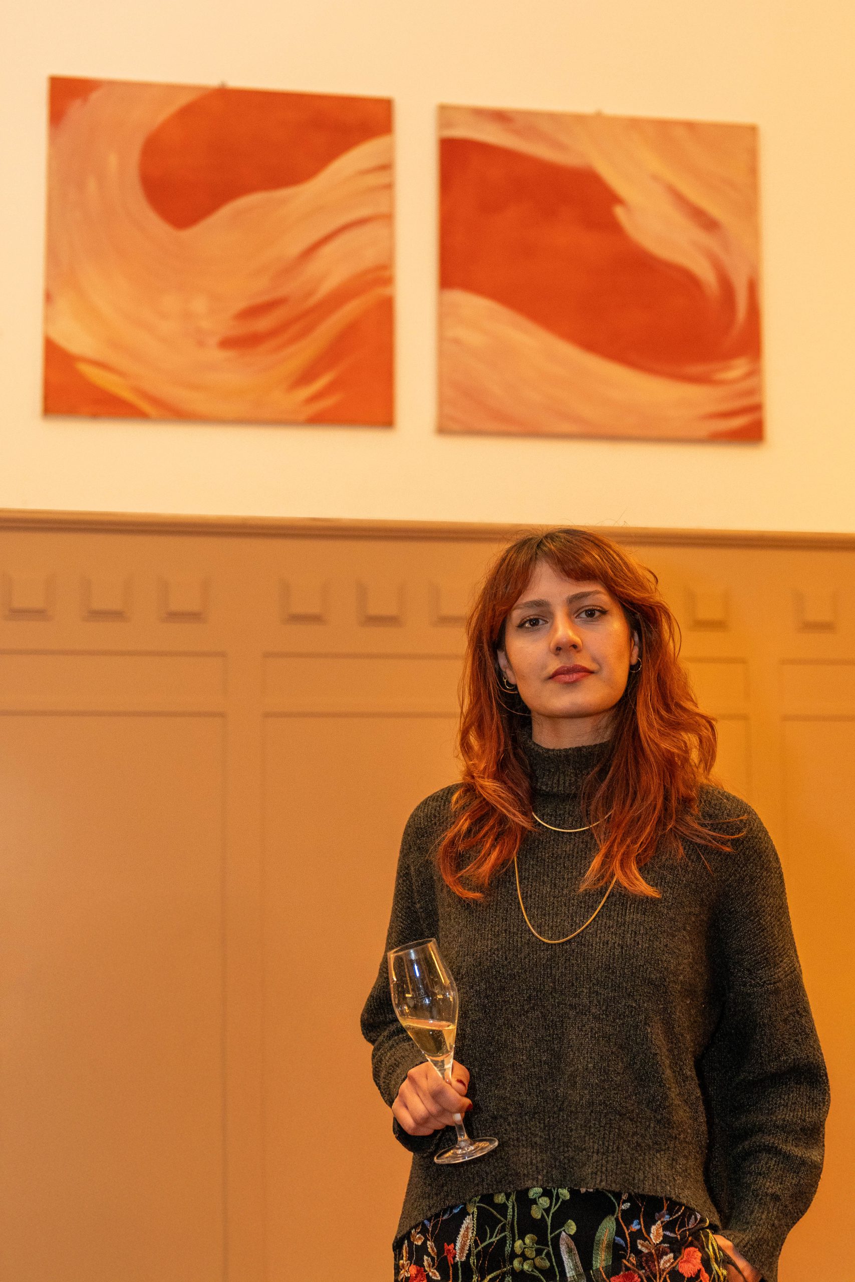 Im Zentrum des Abends standen Werke der Künstlerin Zara, die ihre künstlerische Praxis als „Drawtig“ beschreibt, ein Ansatz, der die Tiefe der Malerei mit der Unmittelbarkeit und Spontaneität des Zeichnens verbindet. Die Künstlerin, die derzeit Malerei an der Kunstuniversität Linz studiert, präsentierte Arbeiten aus ihrer Serie „dead flowers for not yet dead people“.
