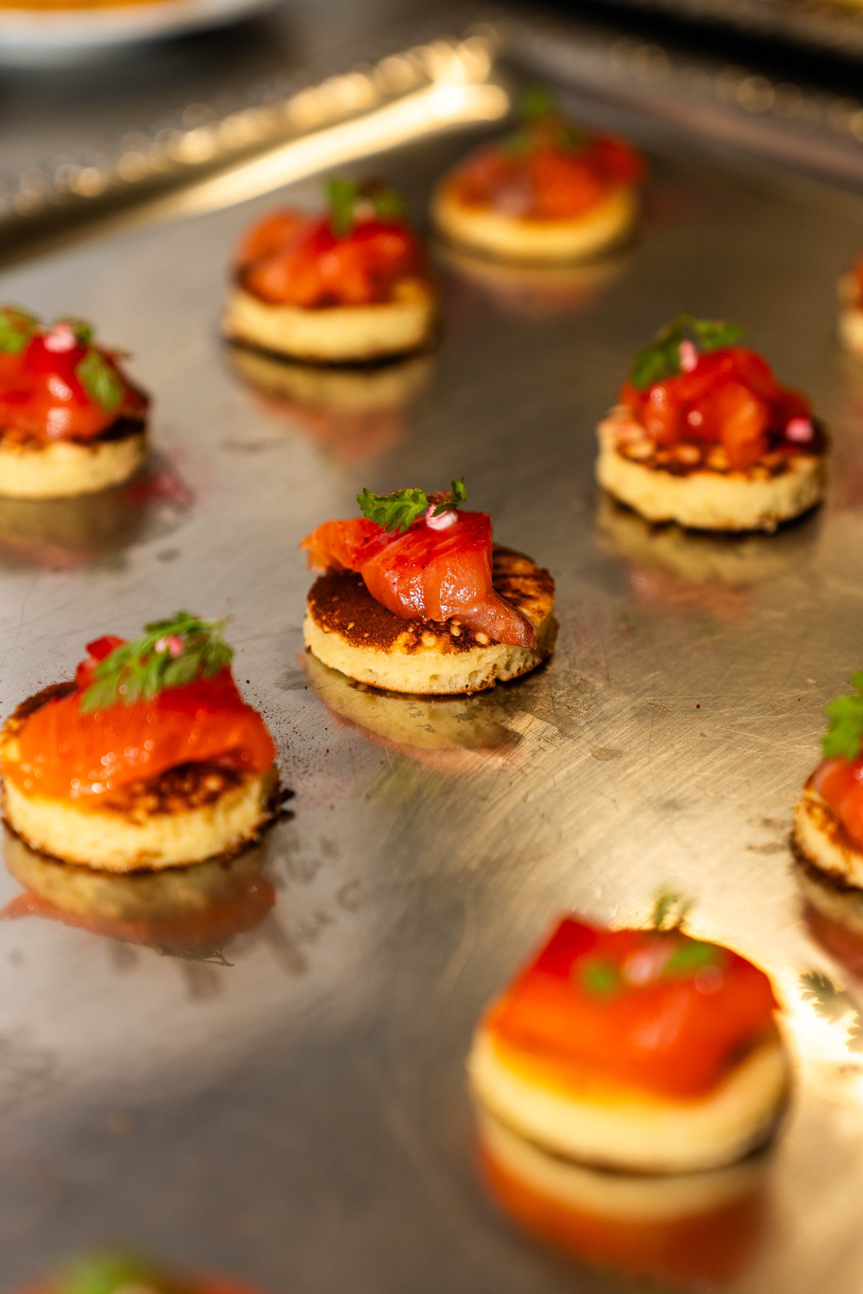 Zwischen 17:00 und 19:00 Uhr wurden den Gäste ein Canapé-Buffet sowie Getränke serviert. Das kulinarische Konzept stammt von Küchenchef Balint Bogdan, der seine Philosophie wie folgt beschreibt: