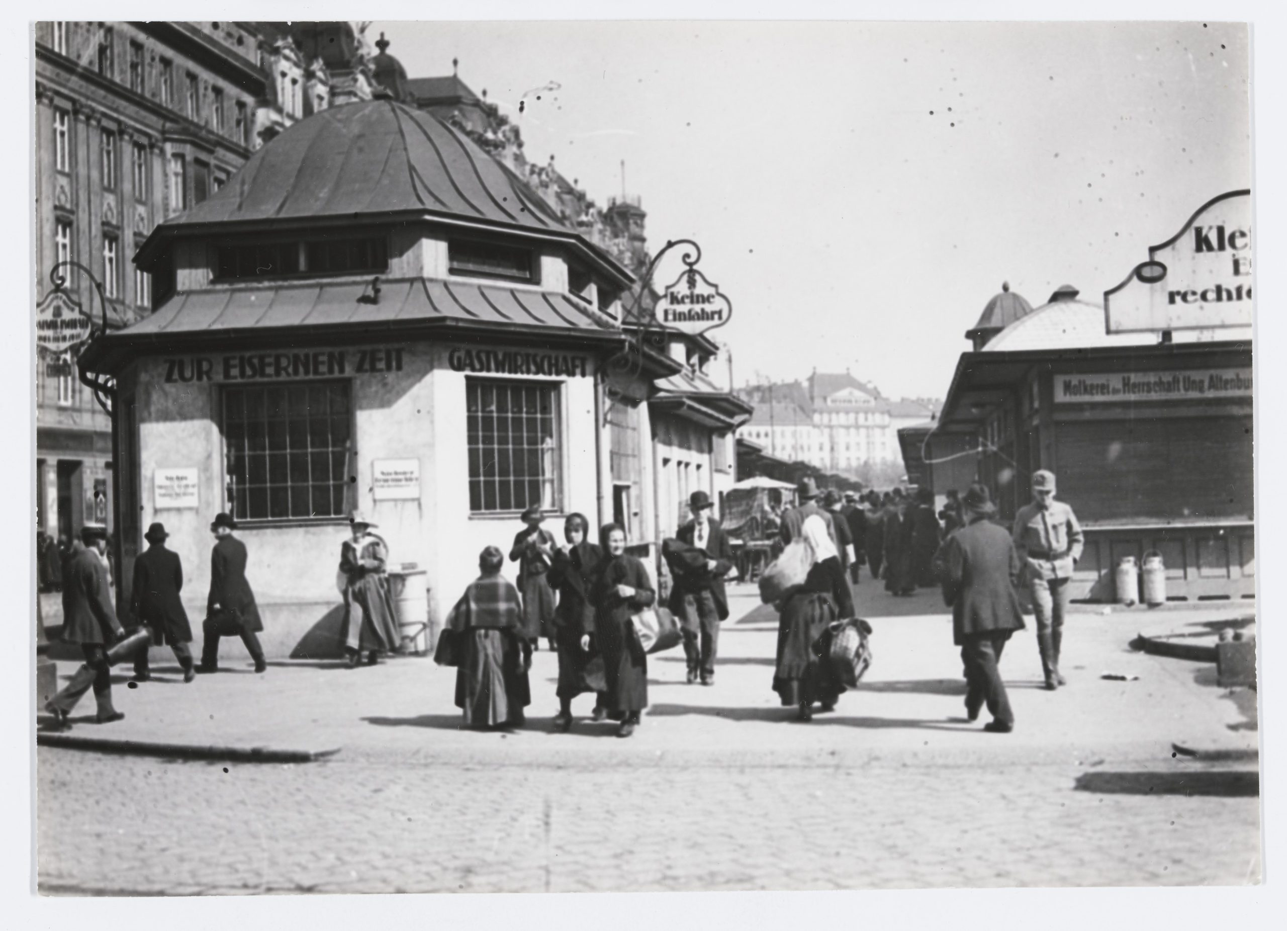 Eisern waren die Zeiten wohl tatsächlich. Der Erste Weltkrieg tobte in ganz Europa und die wirtschaftliche Not hielt die Wiener und Wienerinnen bereits fest. So erzählt uns die Zeitung Der Abend vom 13. Juni 1917, dass die Versorgung mit Rindfleisch äußerst prekär ist, und auch vom Schaf- und Lammfleisch keine Mengen zu erwarten sind. Die „Minderbemittelten“, wie sie Der Abend so uncharmant nannte, mussten mit noch weniger rechnen. Inmitten der Entbehrungen und der sich verschlechternden Nachrichten über den Krieg wurde die „Eiserne“ zum Anlaufpunkt für jene, die am Naschmarkt ihrem Tagwerk nachgingen: Marktstandler, Lieferanten, Träger, einfache Leute auf der Suche nach einer Stärkung nach dem arbeitsreichen Tag. Nur ein billiges Achterl, ein Bier oder ein Gulasch. Die „Eiserne“ war ein Arbeitergasthaus, ohne Prätention, für den Markt da. Dem Leid der anderen gegenüber, waren die Gäste und der Wirt aber nicht verschlossen. So lässt sich aus der gleichen Ausgabe von Der Abend entnehmen, dass Johann Gimcic, der Betreiber der „Eisernen“, eine Blindensammlung unterstützte. Mit 80 Kronen und 60 Hellern war sein Beitrag durchaus umfangreich. Entsprach die Summe doch dem Gegenwert von knapp 10 Kilo Rindfleisch.