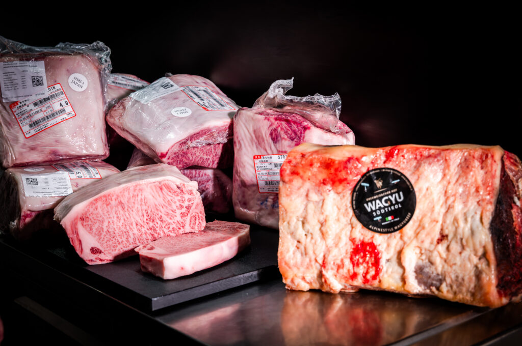 Südtiroler Wagyu positioniert sich bewusst dazwischen. Weniger extreme Fettfülle, mehr alpine Prägung. Mehr Weide, weniger reine Mastorientierung. Es geht nicht um maximale Marmorierung als Selbstzweck, sondern um Balance, Aromatik und Herkunft. Ein europäischer Stil mit eigenem Profil.