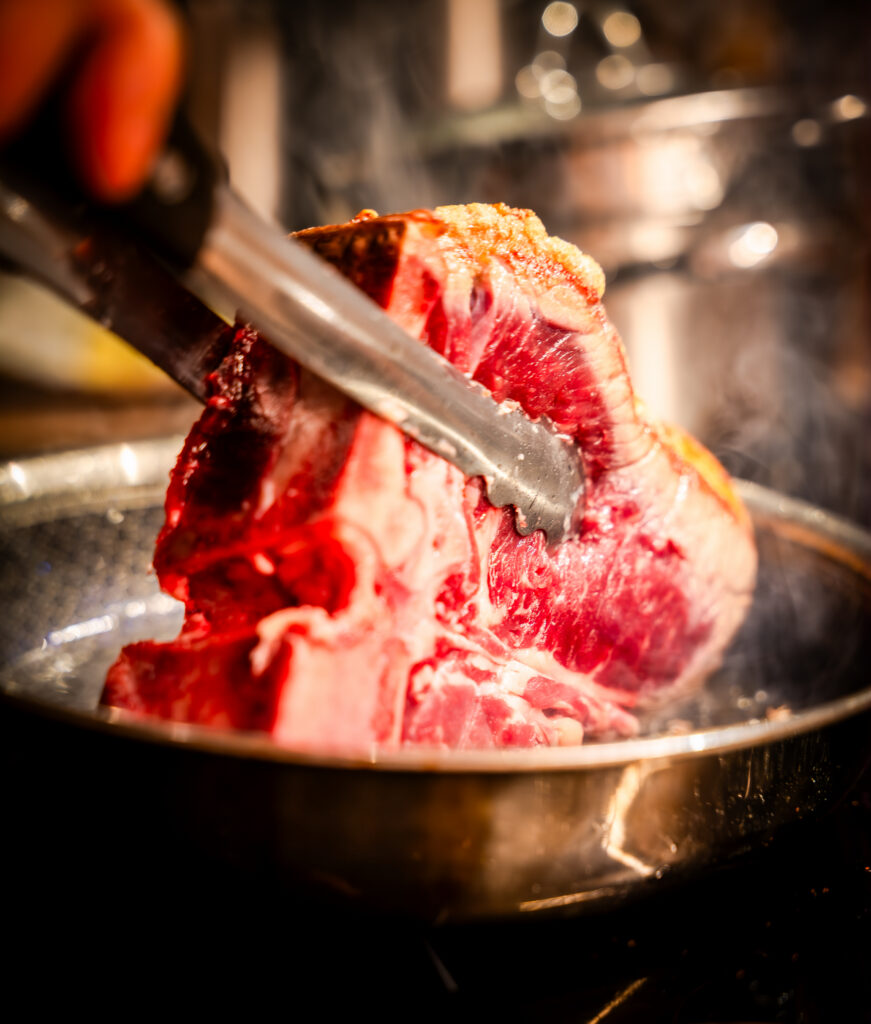 Im beef & glory bekommt dieses Wagyu die Bühne, die es verdient – aber ohne unnötige Effekthascherei. Nach der Ankunft in Wien wird es noch 2 Wochen in den hauseigenen Dry Agern veredelt. Danach sorgt der Hochtemperatur-Broiler sorgt für die perfekte Kruste, während das Innere saftig und weich bleibt. Porterhouse, T-Bone oder New York Strip Bone-in – die Cuts sind klassisch, die Zubereitung präzise.