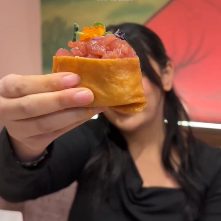Kulinarisch bewegt sich das Bistro im Feld des asiatisch inspirierten Comfort Foods. Herzstücke der Karte sind die sogenannten Inari, die ursprünglich aus Japan stammen und auf Abura-age, dünn frittiertem Tofu, basieren. Dieser wird in einer süßlich-würzigen Marinade aus Sojasauce, Zucker und Mirin gekocht, wodurch die Taschen ihren typischen mild-karamelligen Geschmack erhalten. Klassisch werden sie mit Sushi-Reis gefüllt und als Inari-Sushi serviert. Moderne Bistros interpretieren das Prinzip etwas freier und werten sie mit kreativen Füllungen und abwechslungsreichen Toppings auf. Bei Papa Duck gibt es Inari in zehn Varianten – von Lachs, Thunfisch und Aal bis zu Shrimps oder Fried Chicken (€ 3,50 bis € 3,90 pro Stück). Das Ergebnis kann sich sehen (und schmecken) lassen: Handliche, aromatische Häppchen, die irgendwo zwischen Snack, Sushi und Streetfood liegen und genau deshalb derzeit so gefragt sind.