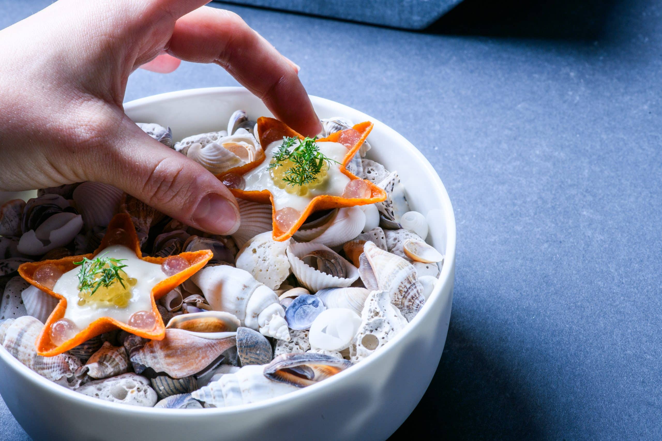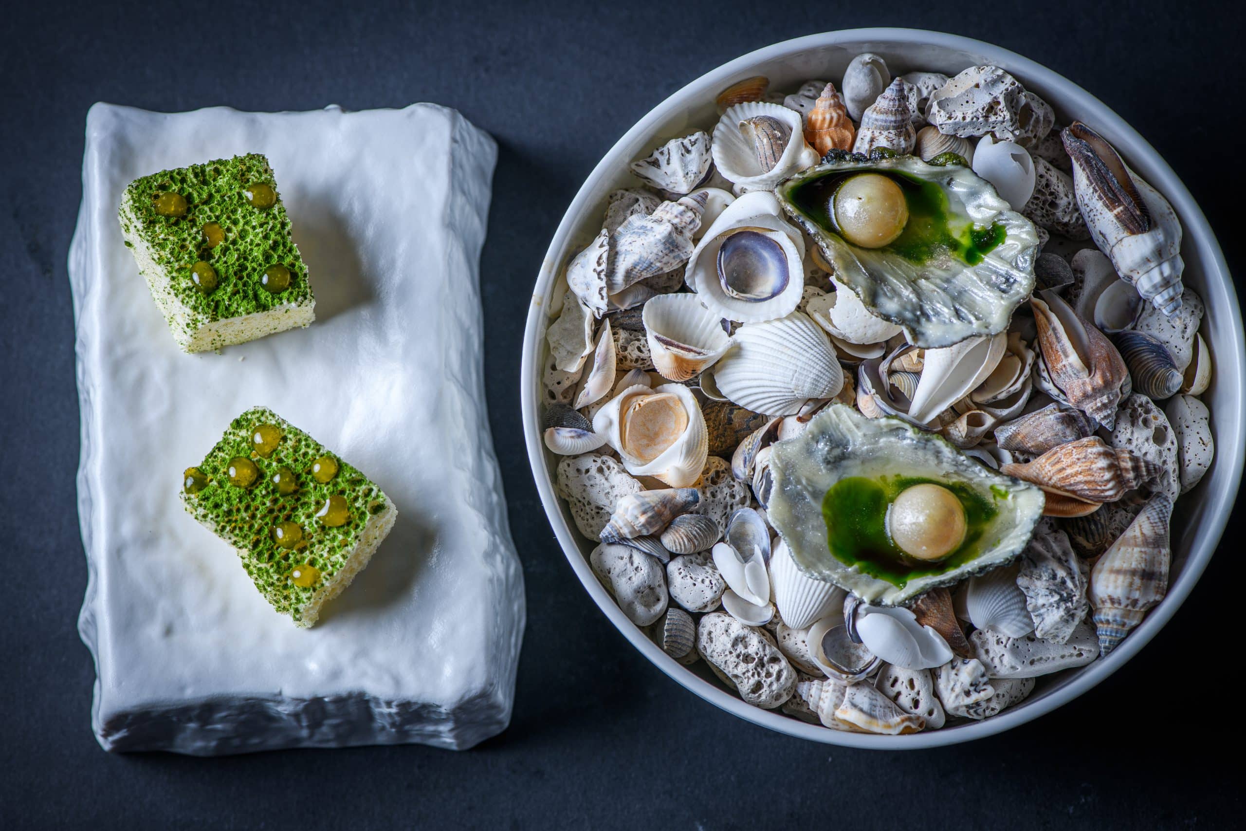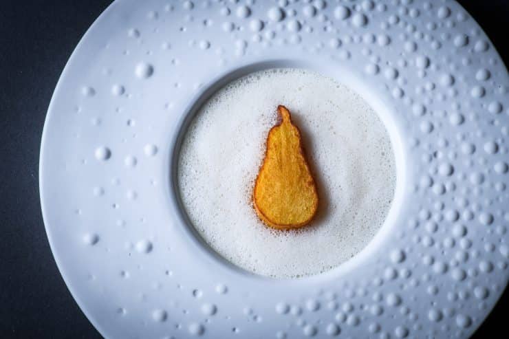 Und dann wäre da noch „Blanc Manger“ – eine Hommage an die feine Gesellschaft vergangener Zeiten, die einst ausschließlich weiße Speisen auf der Tafel duldete. Eggers serviert diese Extravaganz in Form von Steinbutt, Osietra-Kaviar und weißen Blüten.