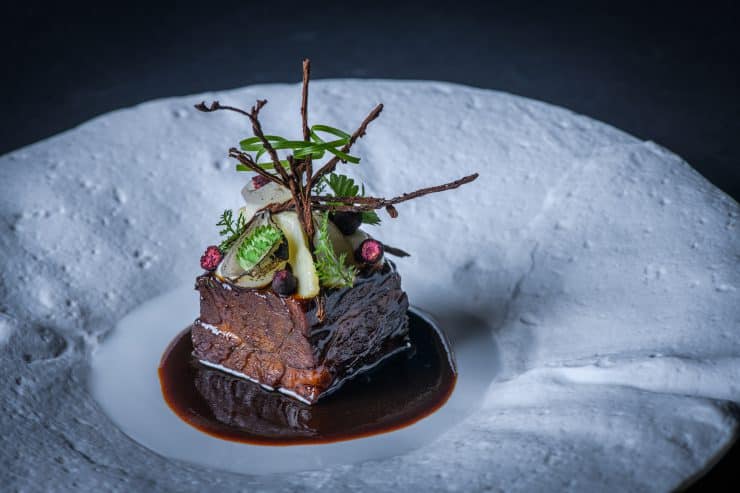 Der Hauptgang? Eine kaiserliche Liebeserklärung an die Rindfleischkultur, gepaart mit Short Rib, Artischocke und einem Hauch Kaffee. Und als süßes Finale: „Friulanische Maultaschen“ – eine unwiderstehliche Liaison aus Tahiti-Vanille, Weizengras und Erdbeerkaviar, neben der „Falschen Auster“, ein Signature-Gang Eggers aus Passionsfrucht, Holunder Dashi und Thymian.