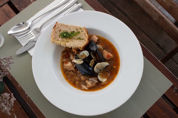 Lassen Sie sich von einem kulinarischen Erlebnis der Extraklasse verwöhnen: Beginnen Sie Ihr Festmahl mit feinen Vorspeisen wie Sarde in Saor und geräuchertem Schwertfisch, begleitet von unserem Vino della Casa. Die herzliche Fischsuppe, die Zuppa di Pesce, wird harmonisch mit einem eleganten PIWI Kollerhof serviert. Als Hauptgang genießen Sie gegrillten Seeteufel al Livornese mit Polenta, perfekt ergänzt durch einen frischen Weißburgunder Elsnegg. Den krönenden Abschluss bildet eine Panna Cotta di Caffé, begleitet von prickelndem Regele Brut Rosé. Dieses Menü bietet nicht nur ein Fest für den Gaumen, sondern auch eine Reise durch die kulinarische Geschichte des Panigl.