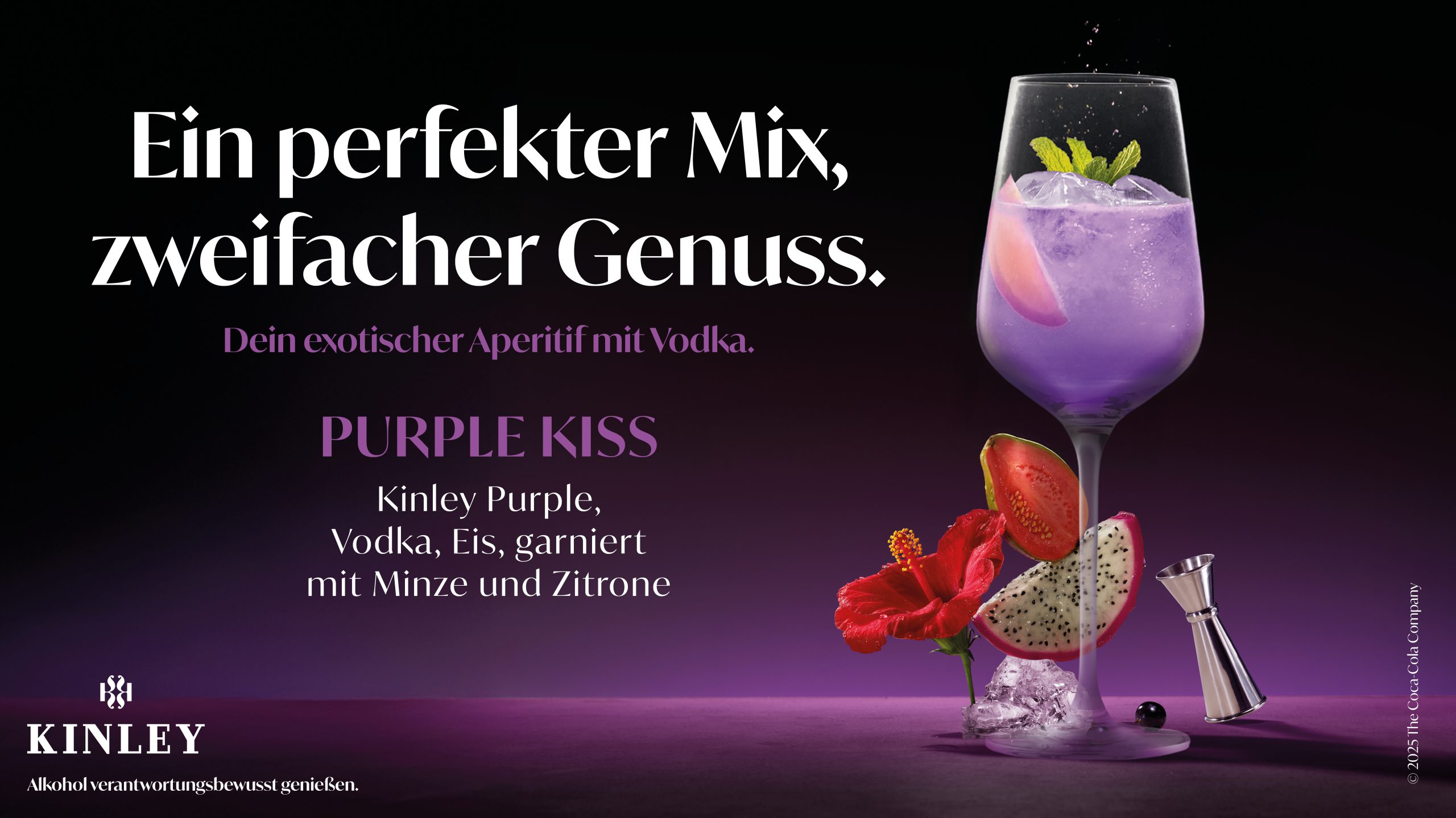 2021 feierte die internationale Tonic-Marke seine Premiere in der heimischen Gastronomie und später auch im Handel und erfreut sich seither einer stetig wachsenden Fangemeinde. In der Gastronomie definiert Kinley das Gewohnte neu und sorgt nun mit Kinley Purple für einen echten Eyecatcher im Glas. Die tropische und exotische Geschmacksrichtung im Segment der Tonics & Mixer überzeugt durch Noten von Drachenfrucht, Guave, schwarze Johannisbeere und Hibiskus.