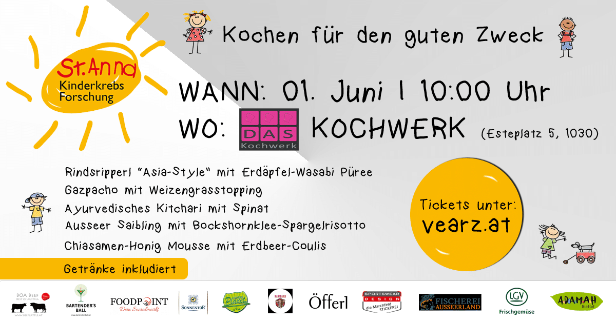 Was: Charity-Kochkurs für die St. Anna Kinderkrebsforschung mit Steffen Kohlmann und Vearz