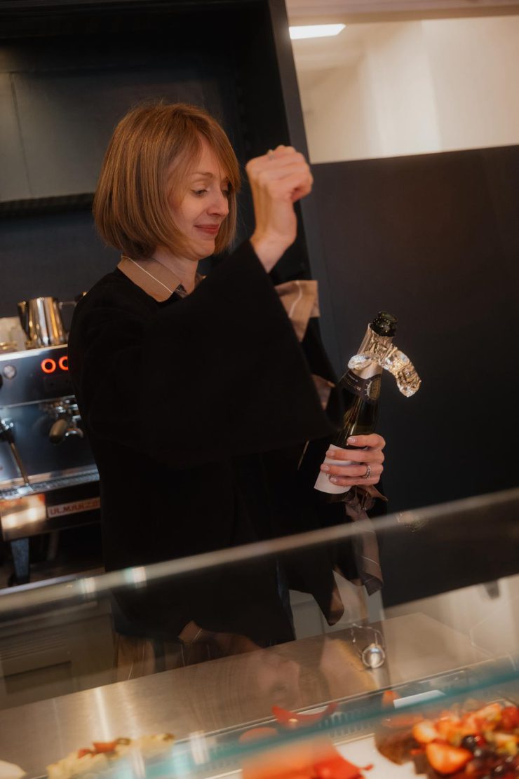 Das Interieur spiegelt den Anspruch wider, Tradition und Moderne zu verbinden. Helle Marmortische und klassische Thonet-Stühle schaffen eine zeitlose Eleganz, während goldene Messing-Details für eine warme Note sorgen. Kunstvolle Akzente setzen die Lichtinstallation von Alex Riegler, die gemeinsam mit Glasbläser Robert Comploj entstanden ist, sowie eine humorvolle Skulptur des Künstlers Martin Grandits, die spielerisch mit der Architektur kontrastiert. Das Ambiente wirkt dabei nie kühl oder distanziert, sondern lädt ein, sich zurückzulehnen und den Moment zu genießen. Ein weiterer persönlicher Touch zeigt sich im Geschirr: Serviert wird auf handgefertigter Keramik aus der Familienmanufaktur Shimai Pottery, die von Kilarskis Mutter und Tante stammt. Diese Verbindung zu familiärer Handwerkskunst rundet das Erlebnis ab. Dieses Prinzip zieht sich durch das gesamte Konzept von La Petite Crème de la Crème – von der Auswahl der Zutaten bis hin zur Gestaltung des Raumes und des Angebots. Die 2017 gegründete Patisserie in der Josefstadt hat sich längst als eine der besten Adressen Wiens für französische Feinbäckerei etabliert. Der zweite Standort setzt diese Erfolgsgeschichte fort und erweitert sie zugleich durch eine großzügige Getränkekarte und einen Außenbereich, der zum Verweilen einlädt.