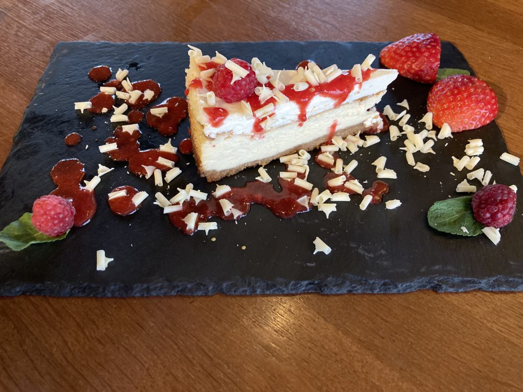 Der liebevoll präsentierte Käsekuchen als Dessert hinterließ einen ebenso guten Eindruck. Oder wie sagte der Koch: “Wir machen das mit Liebe.” Nun gut.
