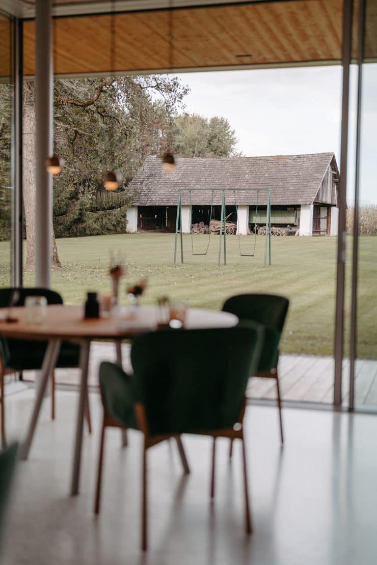 Hier wird der Besuch zum sinnlichen Erlebnis – und das nicht nur wegen der hervorragenden Küche. Bereits die Architektur als Symbiose aus Tradition und Moderne strahlt Behaglichkeit aus. Betritt man das Moritz öffnet sich der neue Gastraum und verschmilzt beinahe mit dem umliegenden Garten. „Platz nehmen, wo sich Wiese und Feld begegnen“, nennen das die Gastgeber Anja-Margaretha Moritz und Küchenchef Roman Pichler. Das Spiel aus Licht und Natur in einem so harmonischen Ambiente lässt den Gast mitunter staunend innehalten.
