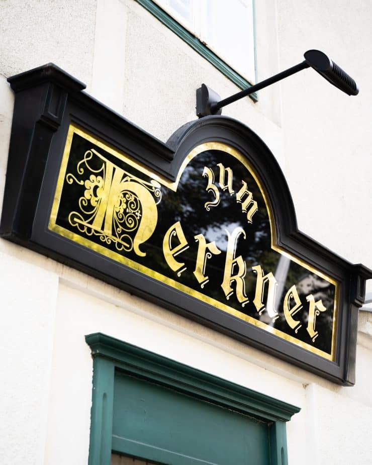 Der Herr Herkner war in den 80er Jahren ein Spitzenkoch. Es gibt so viele Geschichten über ihn, dass er einfach gut sein musste. Leider verstarb er sehr früh und nachdem seine Frau den Betrieb nach 2 Jahren abgab, hat sie festgehalten, dass er immer „Zum Herkner“ heißen muss – in Andenken an ihren Mann. Spannend ist auch, dass das Gasthaus seit 1890 immer ein Restaurant-Betrieb war. Bis auf die Phase 2013-2015, in der es leer stand. Und dann kamen 2016 ja schon wir.
