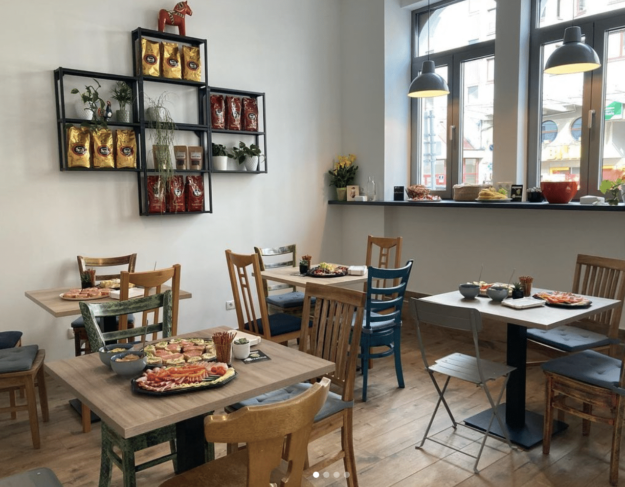 Dazu reicht die Schwedin typisch nordische Gerichte. Selbstgemachte schwedische Mehlspeisen wie Brownies, sogenannte Schneebälle und Zitronenkuchen stehen aktuell auf der Karte. Für Liebhaber der pikanten Küche gibt es drei Grill-Brot-Varianten, einmal mit Schinken, einmal mit Pesto und einmal mit Lachs. Und was wäre ein schwedisches Lokal, ohne Käckebrot? Eben! Keines! Also: Das Knäckebrot mit Kaviar und Ei ist daher sehr zu empfehlen.