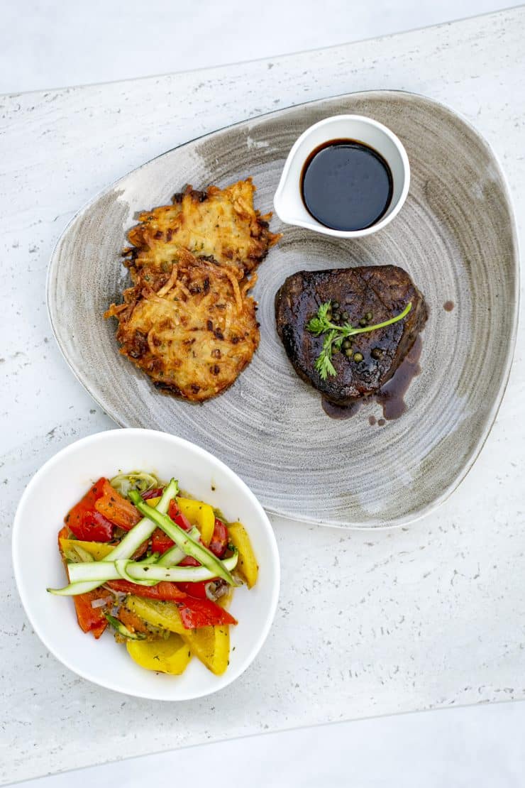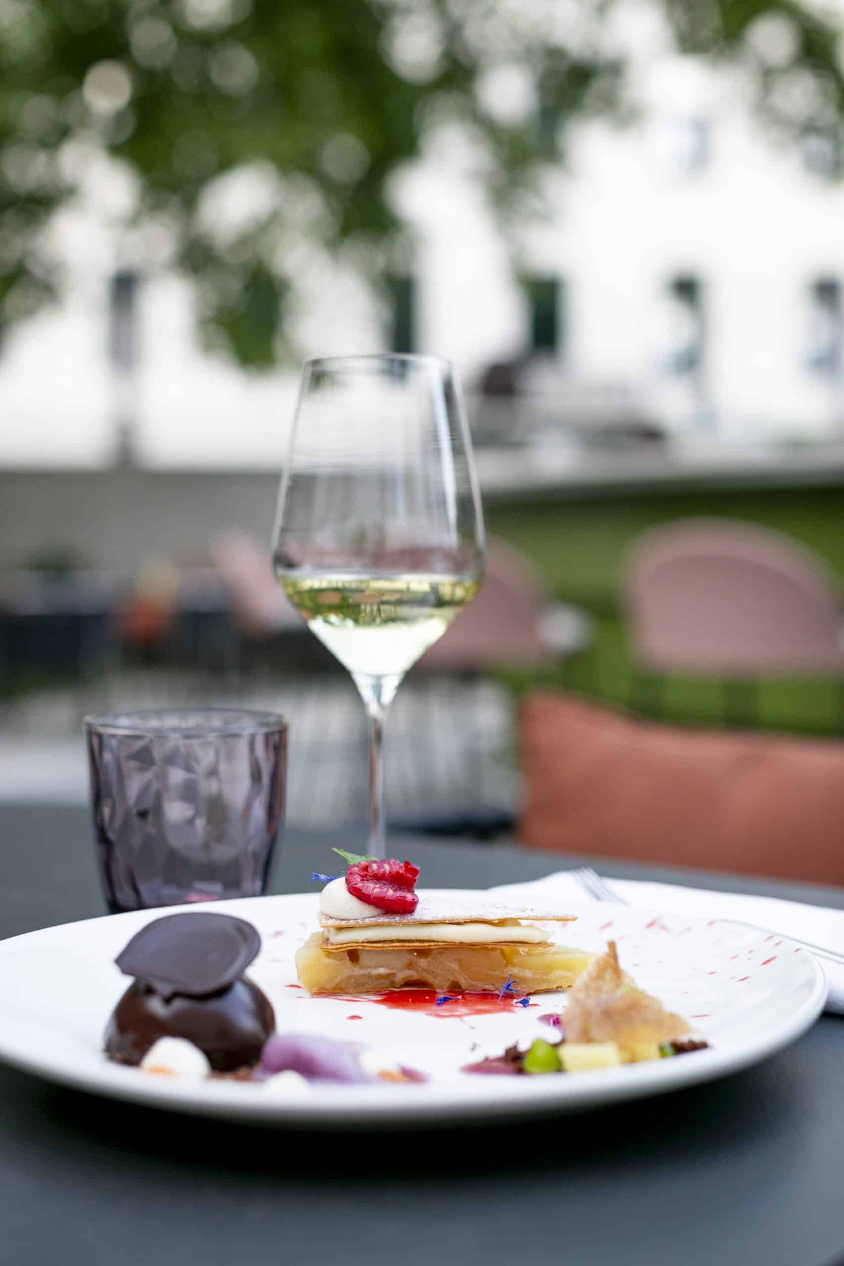 Die Speisekarte beitet ganzjährige Fixstarter wie den veganen „Elstar’s Garten Salat“ (Apfel & Birne, Pilze, Nüsse, bunter Mangold, Karottendressing) und das Szegediner Gulasch vom Mangalitza Schweinsbackerl mit Spitzkraut, böhmischen Knödeln und Grammeln. Auf dem Big Green Egg im Garten darf man sich im Sommer auf herrliche Grill-Tage freuen. Und das Beste kommt bekanntlich zum Abschluss – hier werden Gäste vom Pâtisserie-Team Erika Stein und Alex Mansutti verwöhnt. Unser Highlight: Der geschichtete Apfelstrudel mit karamellisiertem Strudelteig, Vanillecreme.
