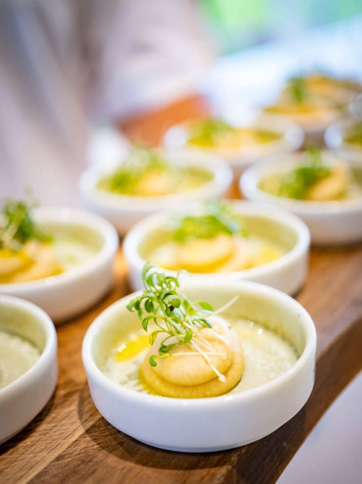 Die gelebte Regionalität spiegelt sich auch im Küchenkonzept wider, wie Küchenchef Stefan Pichler erzählt: „ Wie schon am Hof haben wir auch am Herd nichts zu verbergen: Unsere Küche ist daher bewusst offen und einsichtig gestaltet – das schafft Verständnis sowie Vertrauen und damit eine starke Bindung zum Gast. Bei uns trifft pannonisch geprägte Traditionsküche auf zeitgemäßes Flair – sie ist authentisch verwurzelt, aber – so viel kann ich verraten – auch global inspiriert“. Auf der Speisekarte stehen daher nicht nur Klassiker wie Schnitzel und Co., sondern auch Bio-Angus- und Wildspezialitäten aus eigener Jagd, darunter Wild-Butterschnitzerl, feine Pasteten, saftige Landgut-Burger und mehr; ebenso wie Vegetarisches und Veganes, zum Beispiel die Bio-Kernölschaumsuppe und die selbst angebauten Bio-Kichererbsen als Falafel oder im Curry. Die angebotenen heimischen Fisch-Spezialitäten stammen direkt aus regionalem Fischfang, bevorzugt vom Neusiedler See.