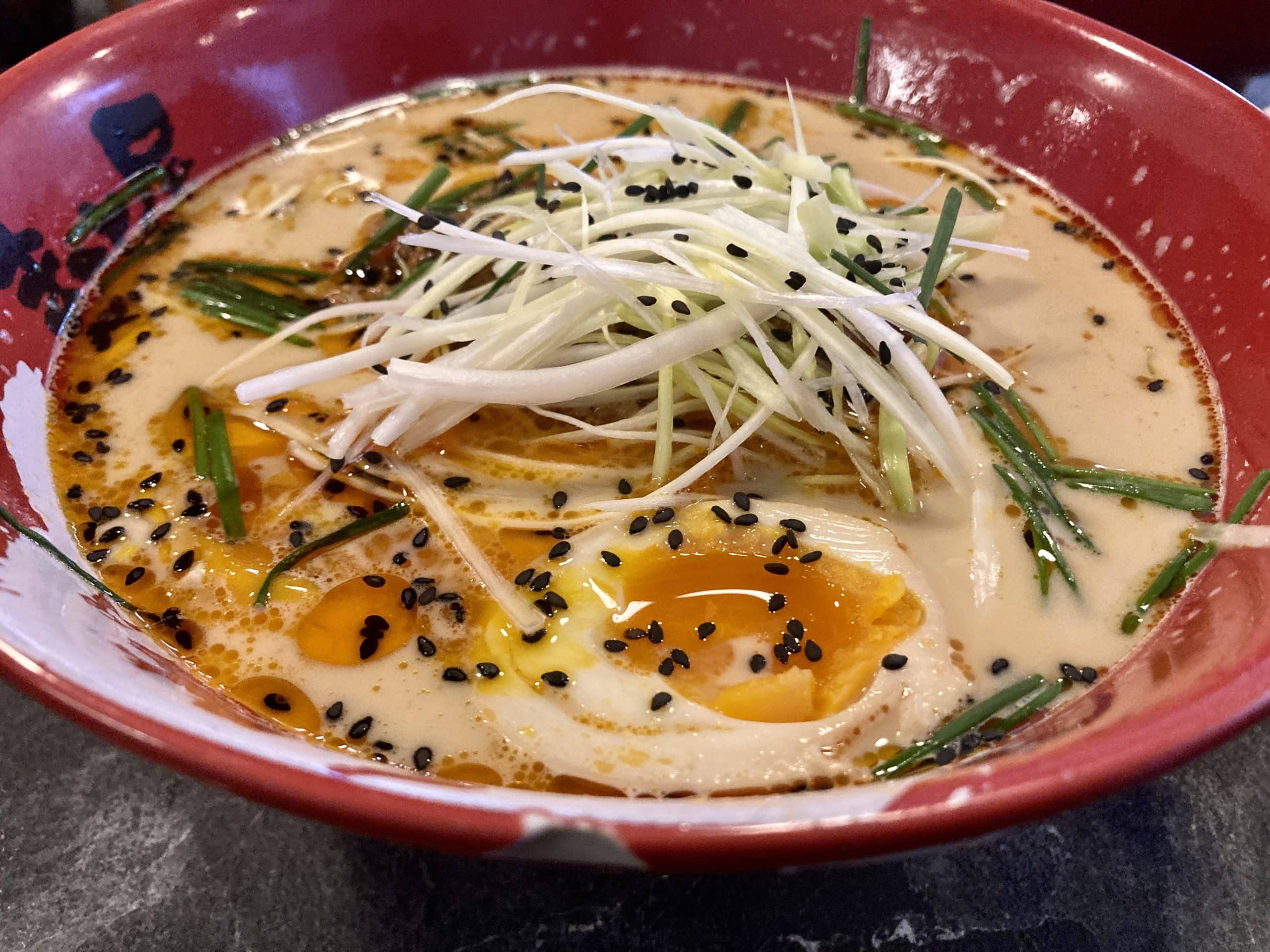 Die Rinderknochenbrühe (15,50 €) ist zwar dicht, hinterlässt aber einen etwas bitteren, leicht klebrigen Nachgeschmack. Die Weizennudeln sind bissfest, das spicy Faschierte pikant, aber nicht scharf. Insgesamt hat das Ramen einen deutlichen Curry-Geschmack, ergänzt durch Kokosmilch. Einlagen: Dem Kimchi fehlt es an Frische, das marinierte Ei hingegen gerät: perfekt.