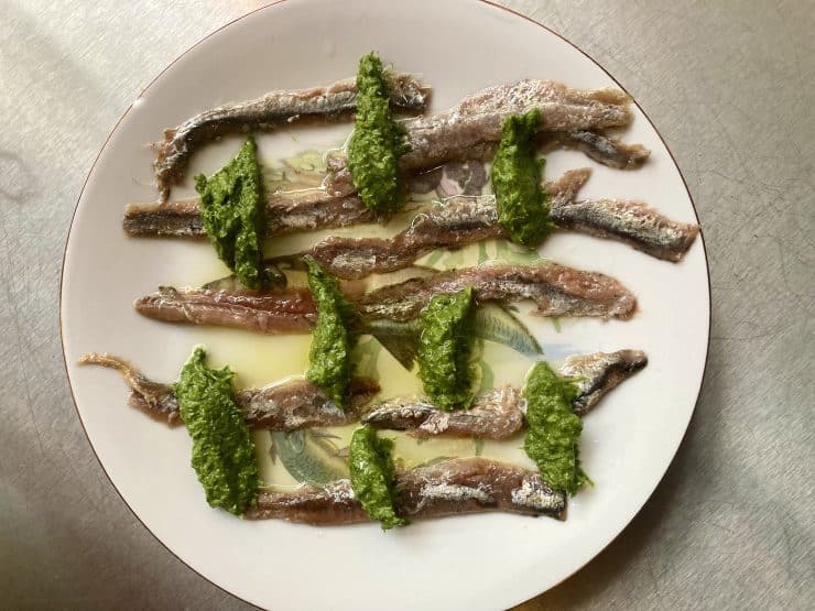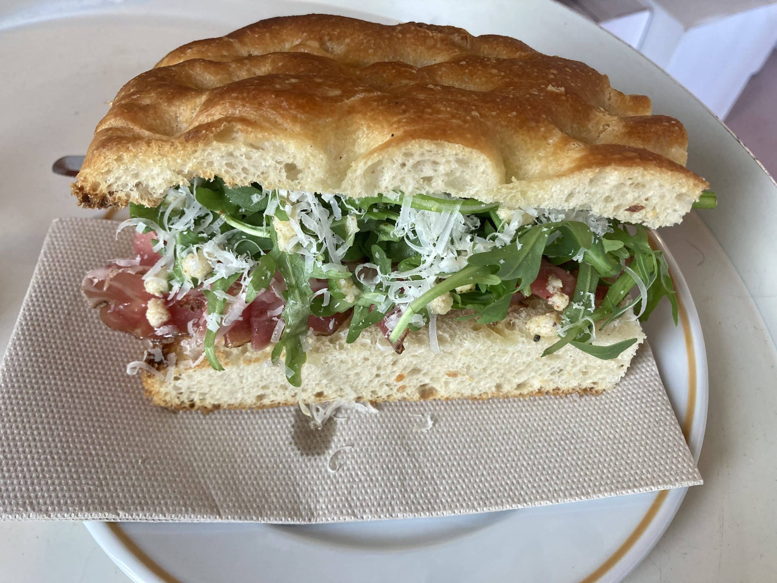 Nun zu den Speisen. Bis 17 Uhr gibt es Frühstück mit Cafe, Kuchen, Croissants oder Käse, Schinken & Toast. Und natürlich die wunderbar fluffige Bio-Focaccia mit allerlei Füllungen. Lonza, Zitronenpesto & Rucola (siehe Bild oben), Beinschinken & Bergkäse, Salciccia & Salami und einiges mehr, die Füllungen wechseln. Dazu Ricotta, eingelegte Artischocken, Pane e Ragu. Ab 17 Uhr bereitet Manuel dann auch Salumi- und Käse-Teller, Burrata, Salate und ein Gericht dazu, ohne das man das Alice nicht verlassen sollte: Alice al Verde mit Kräutersalsa. Dessert: Tiramisu.