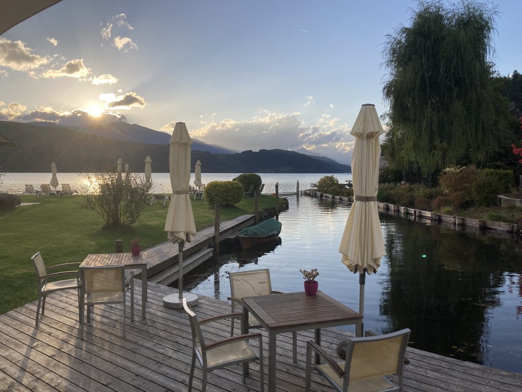 An einer unverbauten Bucht mit Weitblick, am hoteleigenem Strand mit Yachthafen, schweift unser Blick über den stillen, funkelnden See. Der Herbst zieht ins Land, links und rechts sind gerade einmal einige wenige Häuser auszumachen. Wer hier wohnt, hat im Leben wohl Glück gehabt. Dem Vernehmen nach logieren hier ein Ex-Kanzler, ein Bau-Tycoon, einige in Wien einst erfolgreiche Gastronomen, eine Edelfeder (verzeih lieber A.) mit Hang zum Genuss und einige Glückliche mehr. Glück ist es auch, was Elisabeth und Michael Berndl ihren Gästen vermitteln wollen.
