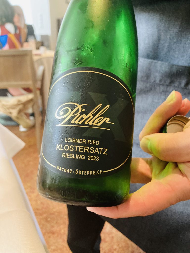 Geändert wurde nicht viel. Es ist Mittag unter der Woche, doch ein wenig Wein darf’s schon: sein. Den Empfehlungen kann man hier blind vertrauen. Sowie Pichlers Klostersatz 2023. Ein frischer Riesling mit typischer Wachau-Nase. Doch nun zum Essen.