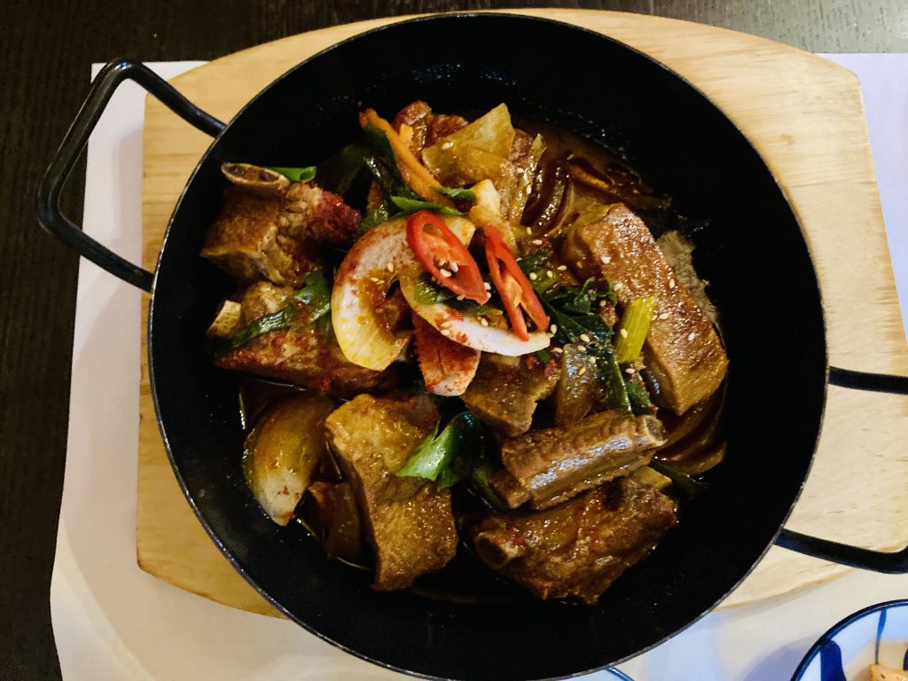 Nun zum letzten Besuch: Die Misosuppe entpuppte sich umamifreie Zone. Der fermentierte Chinakohl war roh, fermentiert nur die Marinade. Koreanisches scharfes Huhn war knusprig & saftig. Gut gelungen: koreanisches Omelett, hier mit Kimchi, gefolgt von Rippchen, kurze Variante, als viel dran an der Rippe, für mich das beste Gericht an diesem Abend.