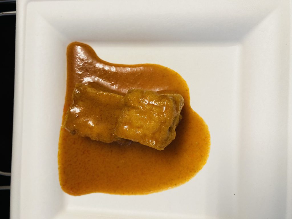 Eine weitere Spezialität ist Curryhaut – Asiaten sind prinzipiell verrückt darnach. Bei der Eröffnung puristisch angelegt, würde ich einen Schuss Soja-Sauce dazu empfehlen.