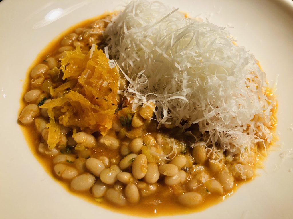 Als nächster Gang folgt ein weiterer italienischer Klassiker: Tomatisierte Cannellini-Bohnen mit etwas Kürbis und reichlich Pecorino-Romano (19 Euro). Ein Gericht, das ob der fein abgeschmeckten Aromen auch in bella Italia bella Figur machte.