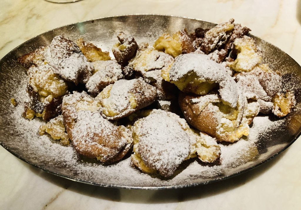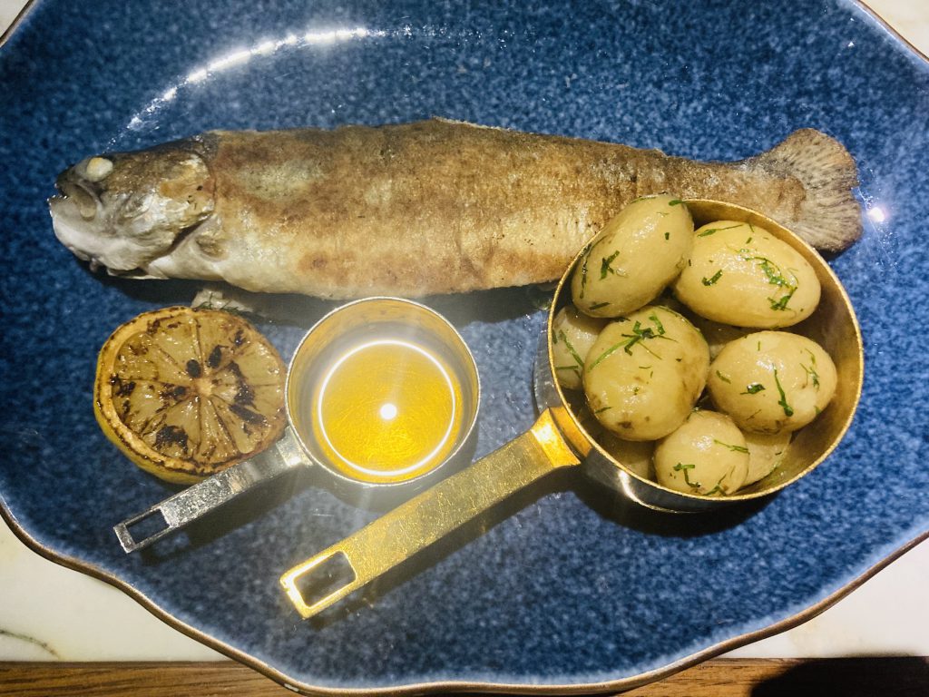 Überraschend ist der eigentliche Signatur-Dish. Forelle (Gut Dornau) Müllerin nämlich, klassisch interpretiert mit Petersilerdäpfeln, geklärter Butter, geschmorter Zitrone. Pur, fein, klassisch. Dazu gab es knackigen, zart marinierten Grünen Salat. Als Dessert: Tadelloser Kaiserschmarrn (Wartezeit: 25 Min.). Alternativ lockt ein Bananensplit in ein Geschmacksparadies der Kindheit. Weiters auf der Dessertkarte: Schokoladekuchen, hausgemachte Eiscreme, Sorbets und einiges mehr.