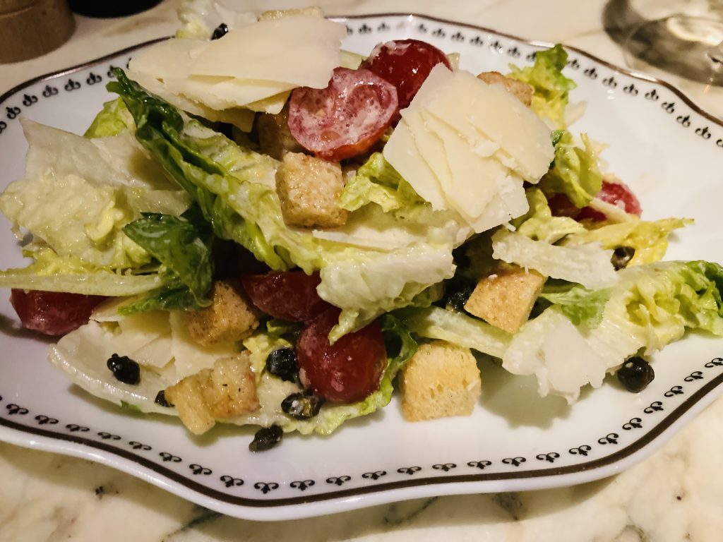 Caesar’s Salad gilt als Benchmark. In der “Neuen Hoheit” wird er – was nicht neu, aber charmant ist – am Tisch gemischt – wahlweise mit Garnelen oder Hühnchen. Uns überzeugt bereits die pure Version. Knackig, frisch, aromatisch, die Croutons nicht fettig, sondern nur kurz geröstet (20€).