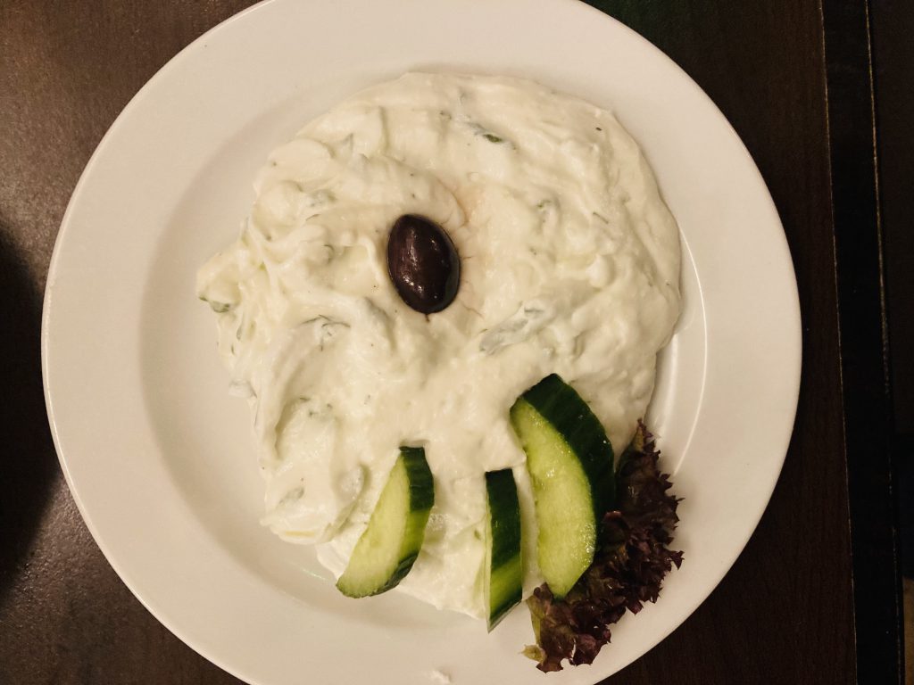Es beginnt wie in Griechenland: Bereits kurz nach der Bestellung stehen zwei Stamperl Ouzo am Tisch. Dazu wird selbst gebackenes Weißbrot gereicht (sehr gut!). Authentisch geht es weiter: Cremig, mit gerade der richtigen Dosis Schärfe vom Knoblauch sowie Frische der Gurke kommt das Tsatsiki.