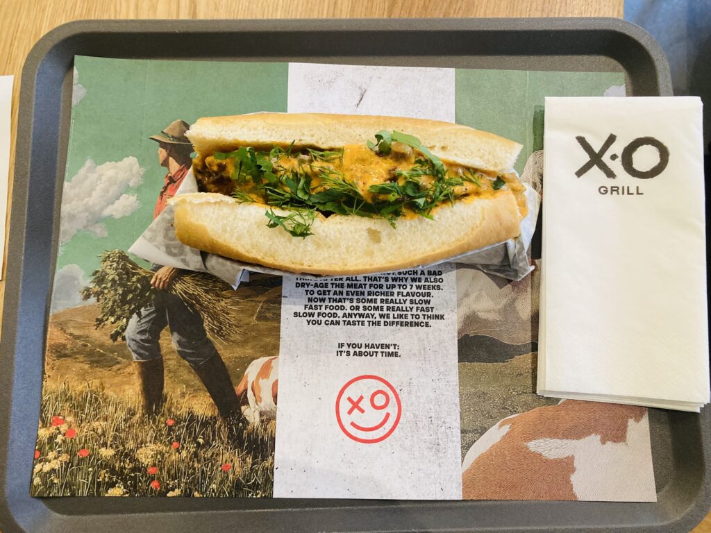 Neu ist die XO-Beef-Location in der Riemergasse.. Wir wählen Philly Cheese Steak. GRILLED XO BEEF STEAK 140G / CARAMELISED ONIONS/AMERICAN CHEESE/ KIMCHI MAYO/FRESH DILL & PARSLEY MINI BAGUETT (16,50 €). Schon das Baguette macht einen traurigen, weil laschen Eindruck und es wird nicht wirklich besser. Pickig, nur Käse, keine Frische, keine Fruchtigkeit, keine Säure.
