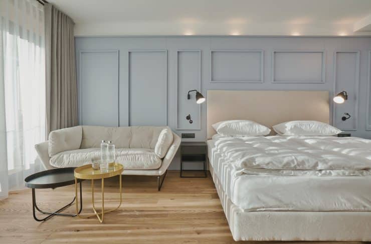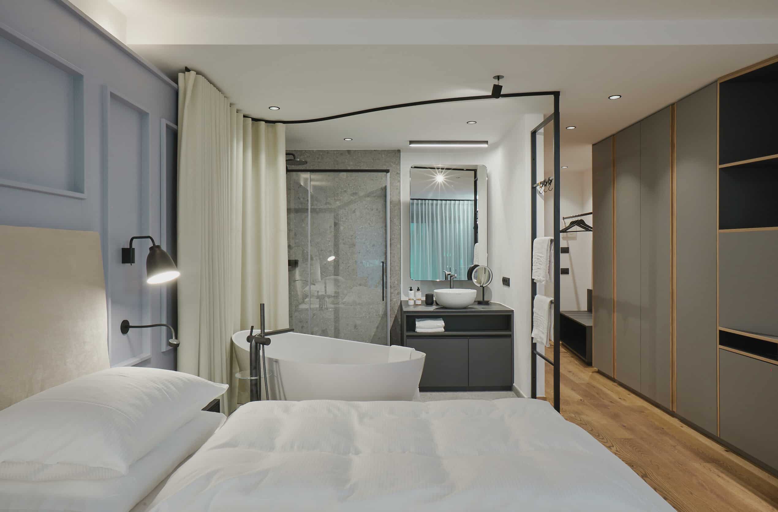 Die Suiten sind Ausdruck jener Ästhetik, die nie laut sein muss, um Eindruck zu hinterlassen: klare Linien, warme Töne, feine Materialien. Zusammen mit dem Münchner Architekturbüro Lang Hugger Rampp entstand ein Ensemble, das moderne Eleganz mit alpinem Charakter verbindet.