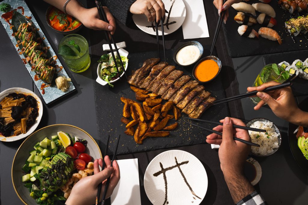 Das kulinarische Konzept orientiert sich bewusst nicht an der klassischen Abfolge von Vorspeise und Hauptgang. Stattdessen setzt Uma Umai auf Sushi, Tapas und Bar – gedacht zum Teilen in der Tischmitte. „Vorspeise, Hauptspeise usw. finde ich eher öde. Im asiatischen Raum ist es normal, alles in die Mitte zu stellen und zu teilen“, so Liu. Dieses Prinzip sei auch in der chinesischen Esskultur verankert und fördere das gemeinsame Erlebnis am Tisch.