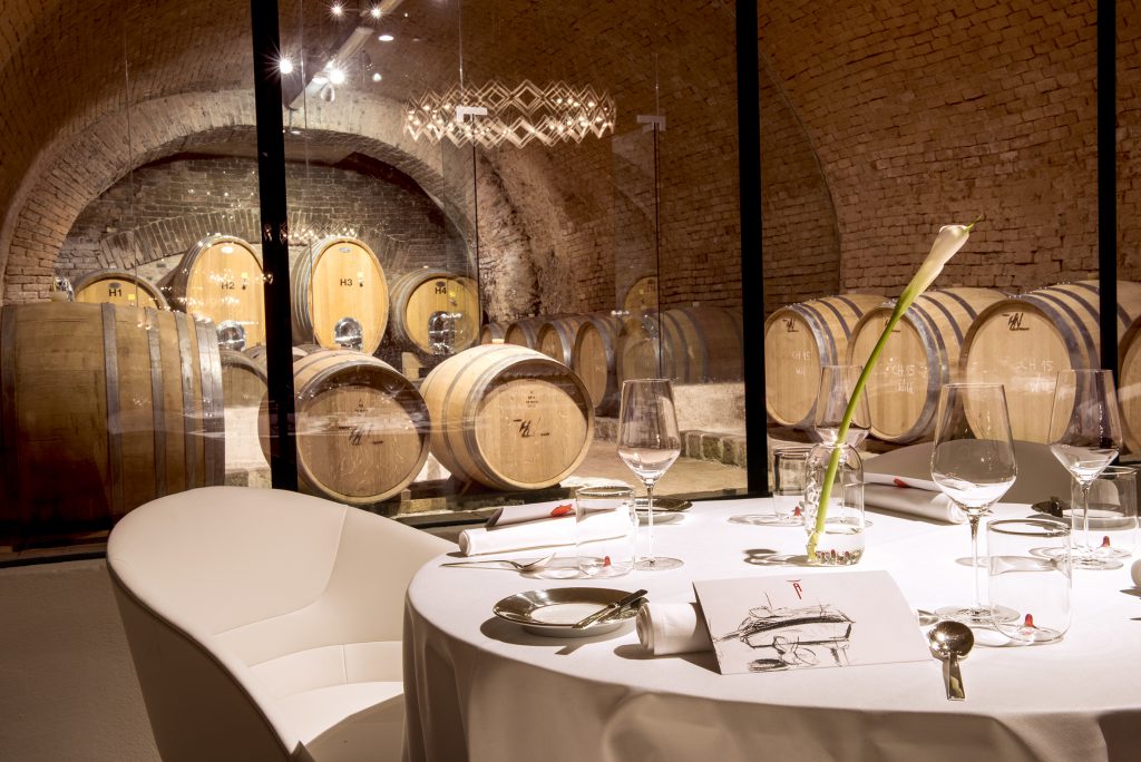 Zum Essen kommt der Wein aus eigenem Anbau, die Reben wachsen nur wenige Meter von den Tischen entfernt. Im Sommer laden Panoramaterrassen und Pergola-Lounge zum Verweilen ein, während im Winter die gemütliche Stube mit Kamin Wärme spendet.